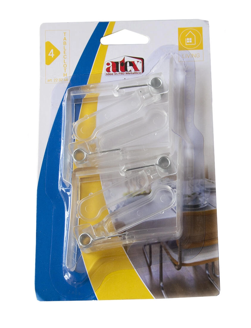 Praktična plastična sponka za prt z merami 62 × 62 mm prt trdno drži na mestu in preprečuje njegovo drsenje ali odnašanje z vetrom. V pakiranju so 4 kosi, idealno za vsakodnevno in zunanje pogostitve.