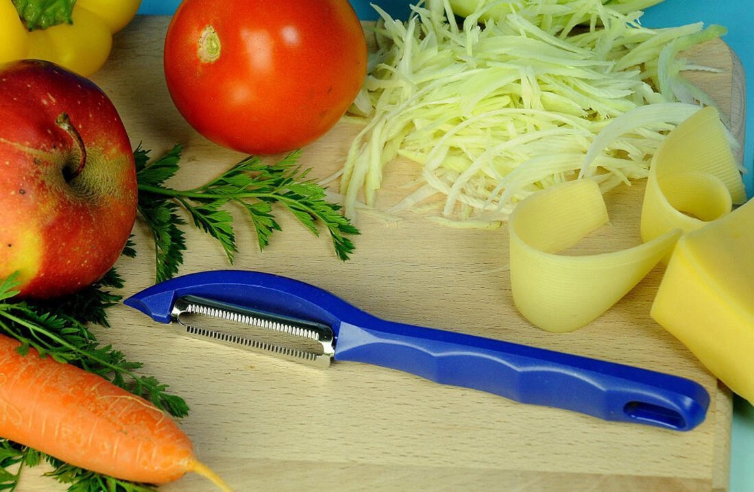 Praktičen kuhinjski lupilec z obojestranskim in nazobčanim rezilom za desničarje in levičarje. Zahvaljujoč nerjavnemu rezilu in udobnemu plastičnemu ročaju zlahka olupi krompir, jabolka, kivije, paradižnik, korenje in hren ter obvlada tudi fino rezanje zelja za priloge. Univerzalen, trpežen in natančen za vsakodnevno uporabo.