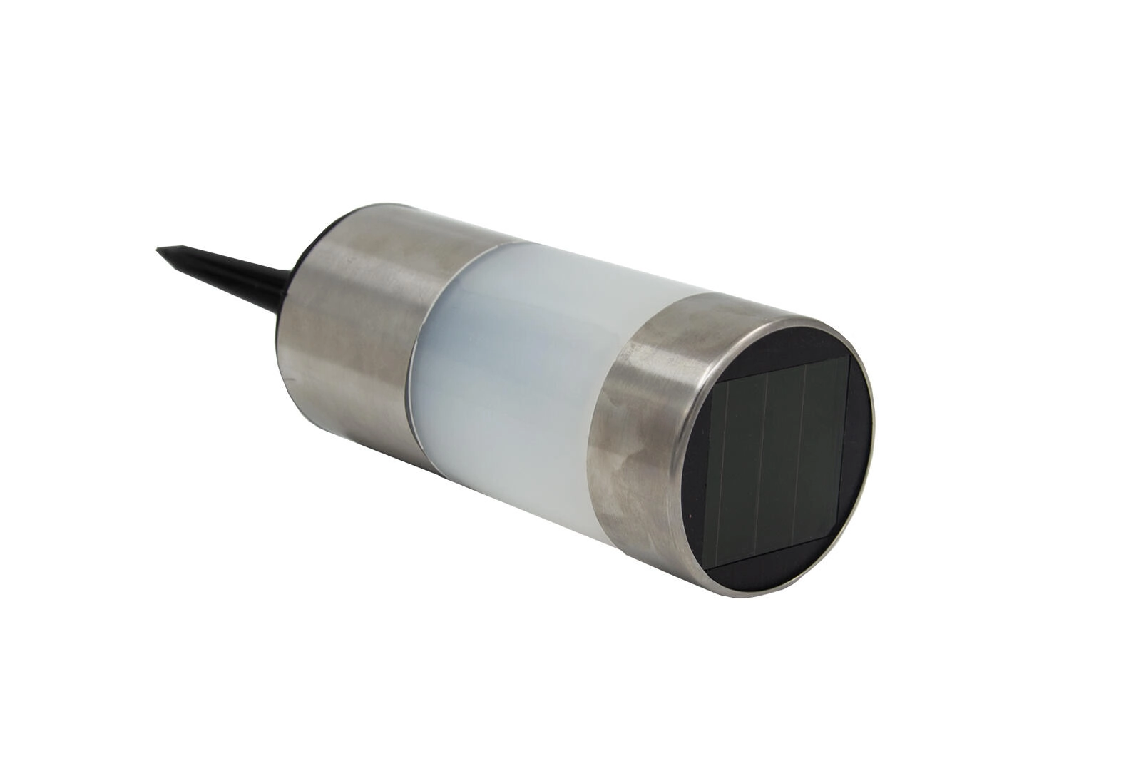 Elegantna solarna vrtna svetilka s premerom 6 cm in višino 23 cm zvečer zagotovi nežno ambientalno svetlobo brez kablov. Zahvaljujoč vgrajenemu solarnemu panelu in bateriji se po mraku samodejno prižge, opremljena je z 1 LED, zaščito IP44 in stikalom ON/OFF. Odporna izvedba iz nerjavnega jekla in plastičen zemeljski zaganjalnik omogočata enostavno namestitev in dolgo življenjsko dobo.