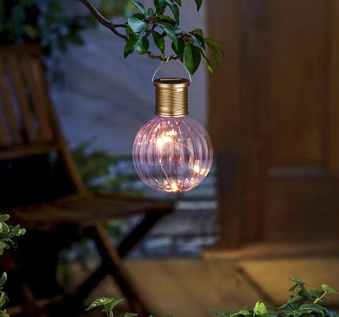 Elegantna svetlo vijolična solarna svetilka s premerom 8,5 cm in višino 11,2 cm je idealna za večerno vzdušje in nežno dekorativno osvetlitev. Vgrajene 4 LED zagotavljajo varčno in zanesljivo svetlobo brez potrebe po električnem priključku. S kavljem jo zlahka obesite na vejo, pergolo ali stenski kavelj.