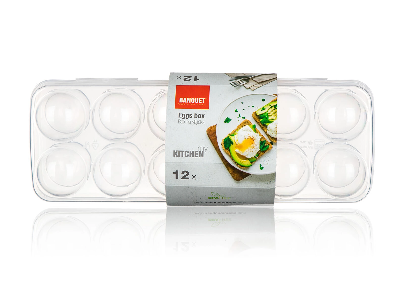 Ta kompaktna škatla sprejme do 12 jajc, z zahvaljujoč prozorni izvedbi pa imate količino in svežino vedno pod nadzorom. Trden pokrov z zapiralom drži vse na mestu, preprečuje neželeno odpiranje in ščiti jajca pri rokovanju ter prevozu.