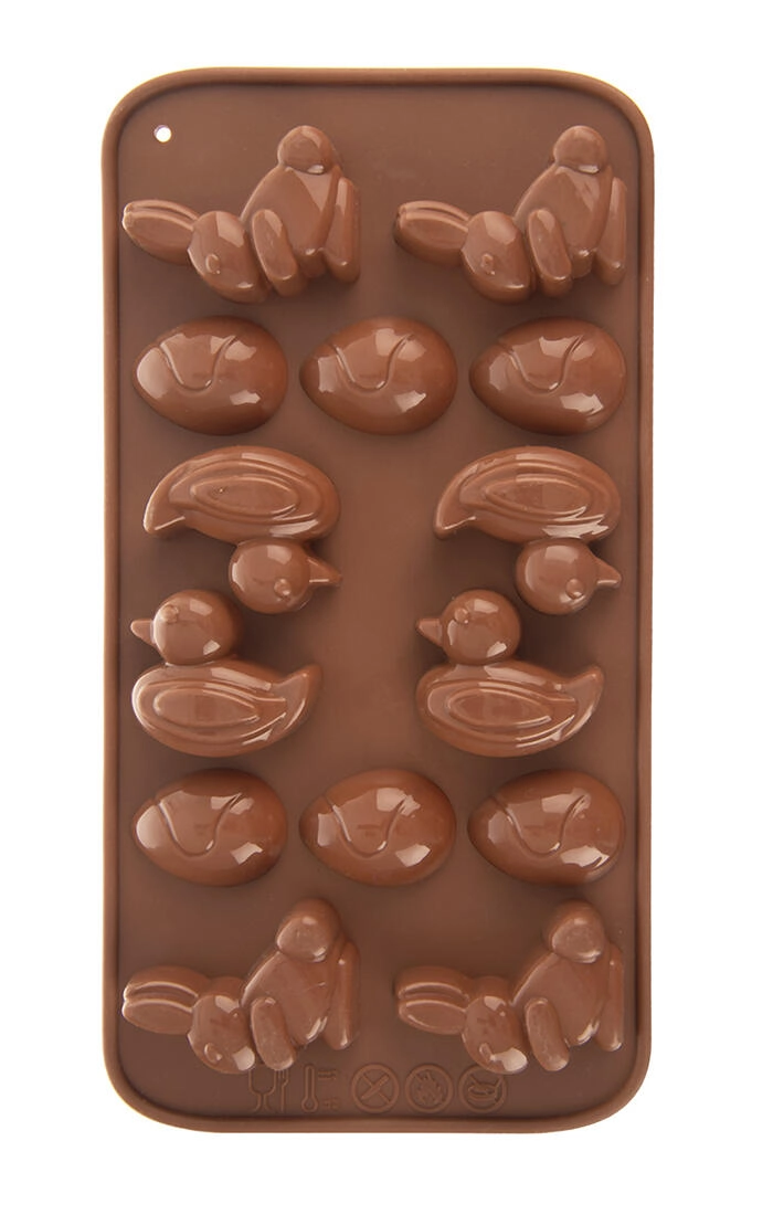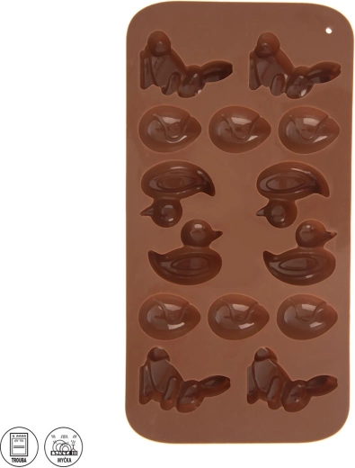 Silikonski model Velika noč – zajčki, račke in jajčka, 14 kosov, rjava