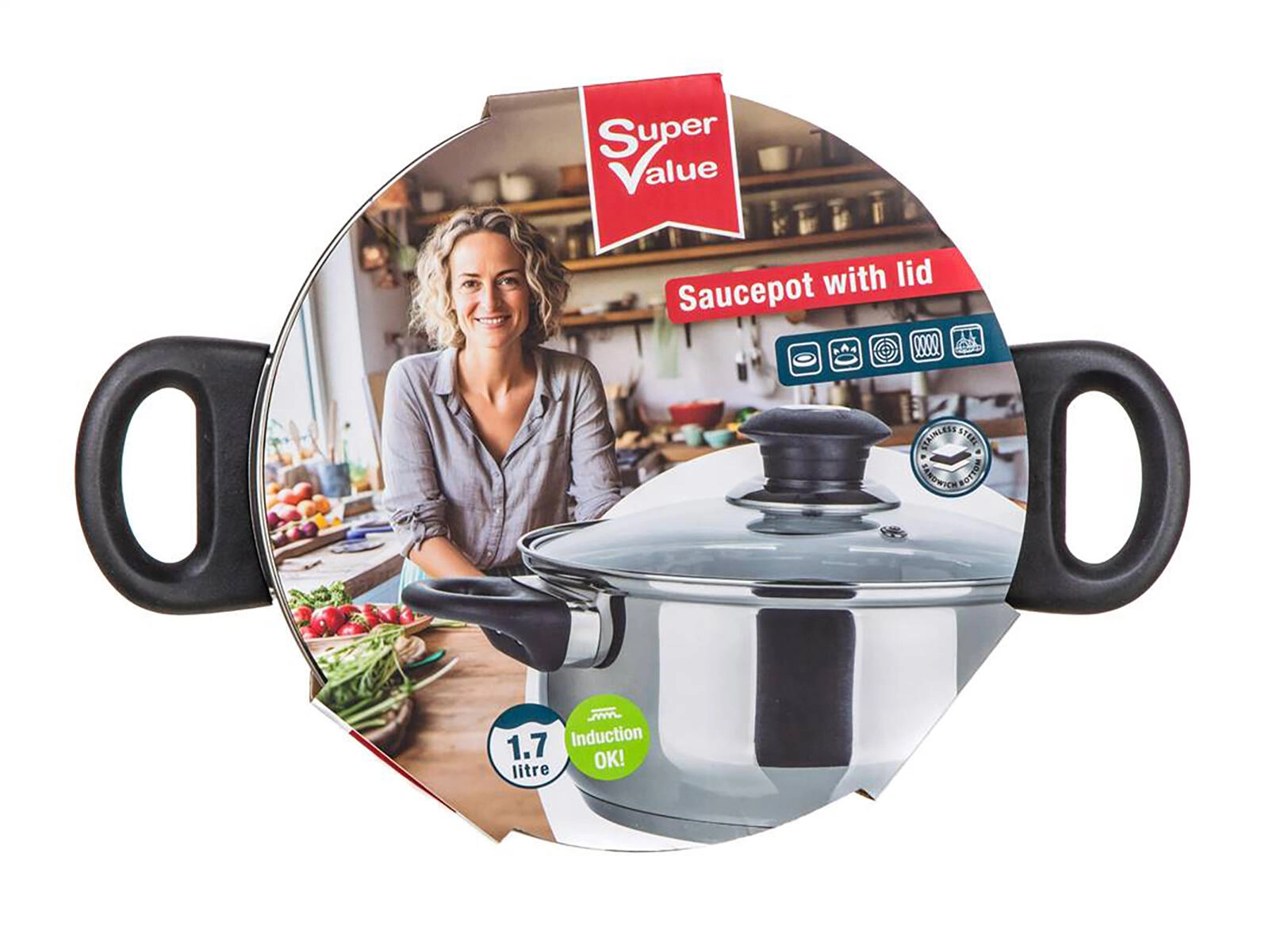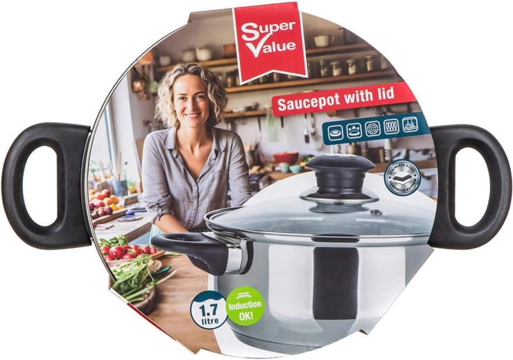 Praktičen nerjaven lonec SUPER VALUE s prostornino 1,7 l in premerom 18 cm je idealen za vsakodnevno kuhanje. Ponuja enakomerno porazdelitev toplote, stekleni pokrov z ventilom za paro za nadzor kuhanja in toplotno odporne bakelitne ročaje za varno upravljanje. Primeren je za vse vrste kuhalnih plošč, vključno z indukcijo, in ga lahko pomivate v pomivalnem stroju.