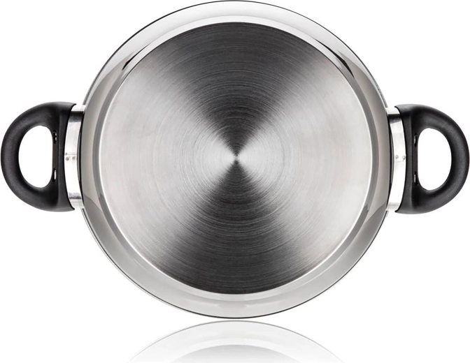Ergonomski bakelitni ročaji in gumb na pokrovu zagotavljajo varno in udobno držanje tudi pri višjih temperaturah. Lonec je združljiv z vsemi vrstami kuhalnih plošč – plin, elektrika, steklokeramika in indukcija – po kuhanju pa ga preprosto operete v pomivalnem stroju.