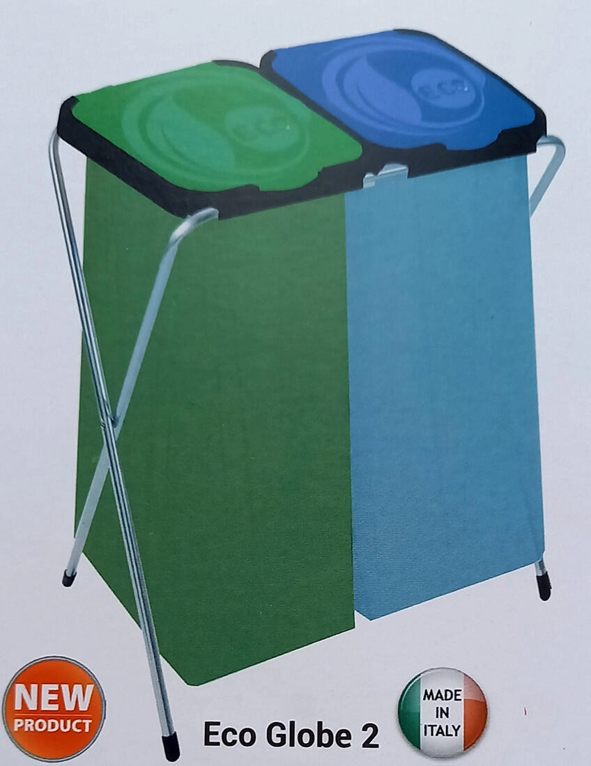 Stojalo za ločevanje odpadkov ECO-GLOBE 2 je idealna rešitev za sistematično ločevanje odpadkov. Dvojna razporeditev omogoča ločevanje na primer plastike in papirja oziroma mešanih odpadkov od reciklabilnih surovin. Zaradi premišljenih dimenzij 66 × 42 × 81 cm se stojalo prilega kuhinjam, tehničnim prostorom in pisarniškim kotičkom.