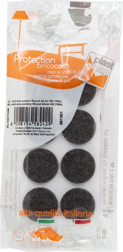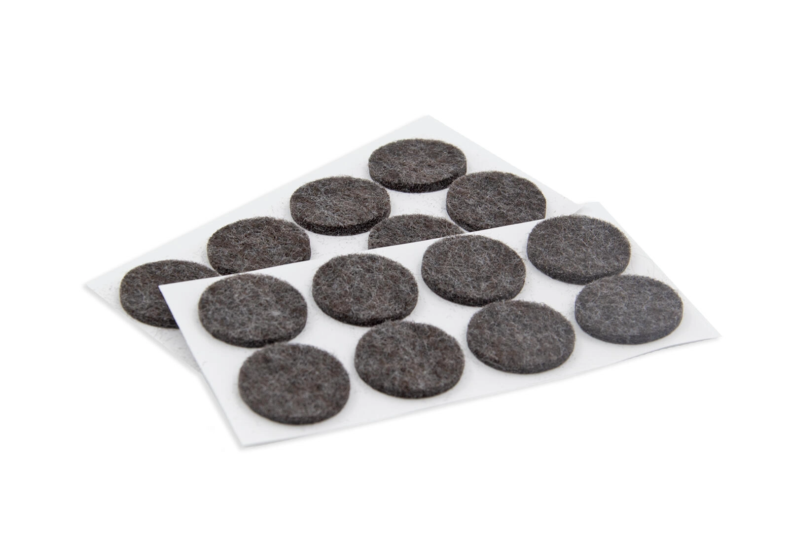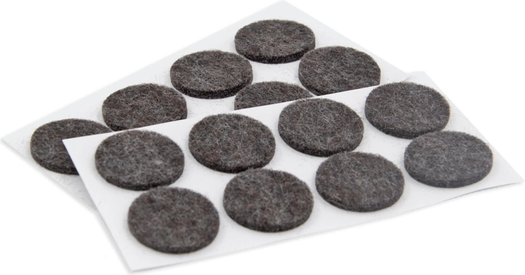 Praktične filcne podložke s premerom 24 mm zanesljivo ščitijo tla pred praskami in udrtinami od pohištva. Zahvaljujoč samolepilni plasti je njihova namestitev hitra in enostavna, medtem ko mehak filc zagotavlja tiho premikanje stolov in miz brez neželenega hrupa. Idealne za lesena, laminatna in vinilna tla.