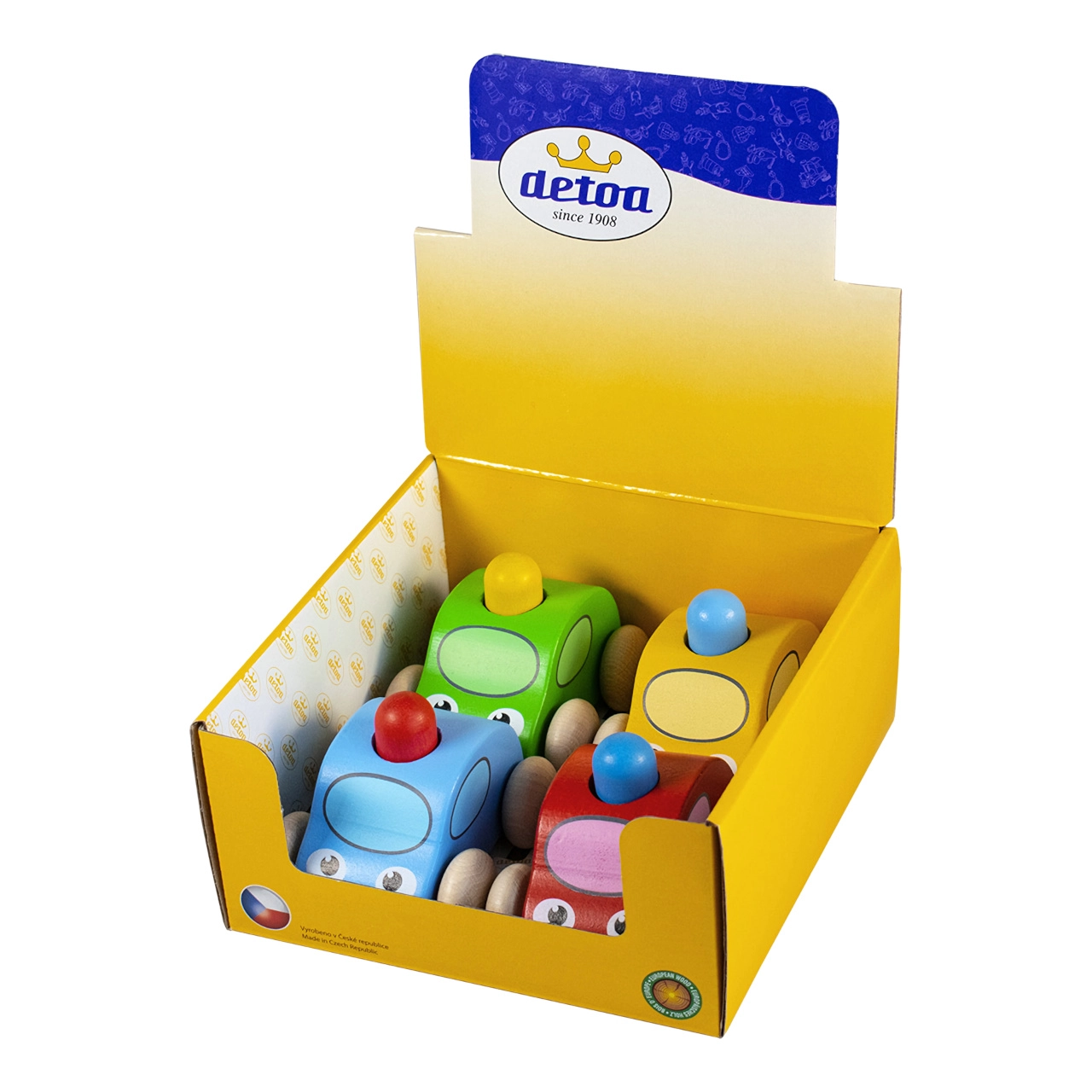 Odkrijte čar tradicionalnih čeških lesenih igrač. Piskajoči avto z modro lučjo je izdelan iz skrbno izbranega lesa iz Srednje Evrope in lakiran z certificiranimi, okolju prijaznimi barvami. Ob pritisku na modro luč se oglasi zabavno piskanje, ki vabi k igri in razvija otrokovo radovednost.