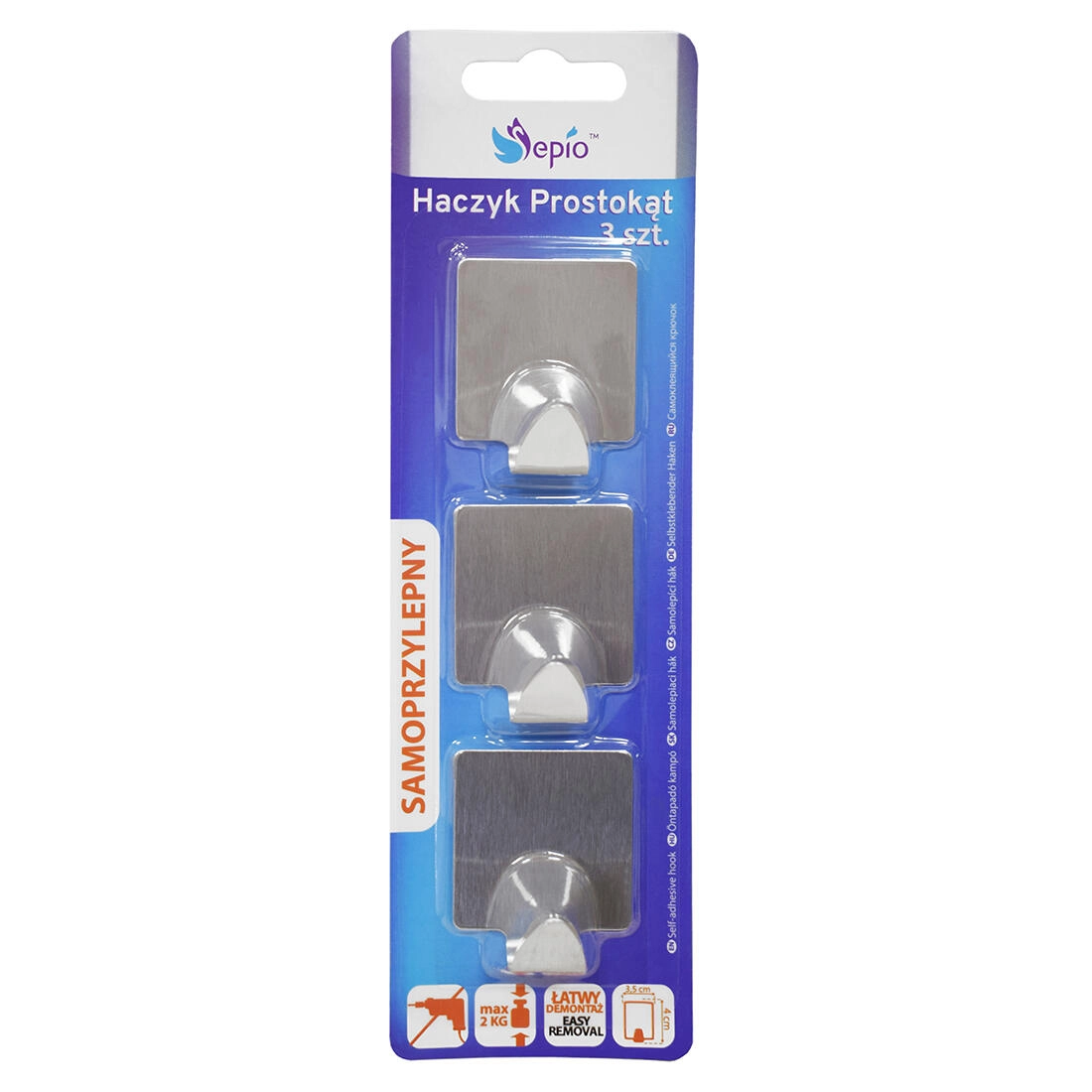 Praktični samolepilni kavlji iz nerjavnega jekla za hitro in čisto namestitev brez vrtanja. Zahvaljujoč kakovostnemu dvostranskemu lepilnemu traku se enostavno namestijo, ne poškodujejo površin in prenesejo do 2 kg. Idealni za kopalnico, kuhinjo ali predsobo – kompaktne mere 2 × 3,5 × 4 cm in sodoben kvadratni dizajn.