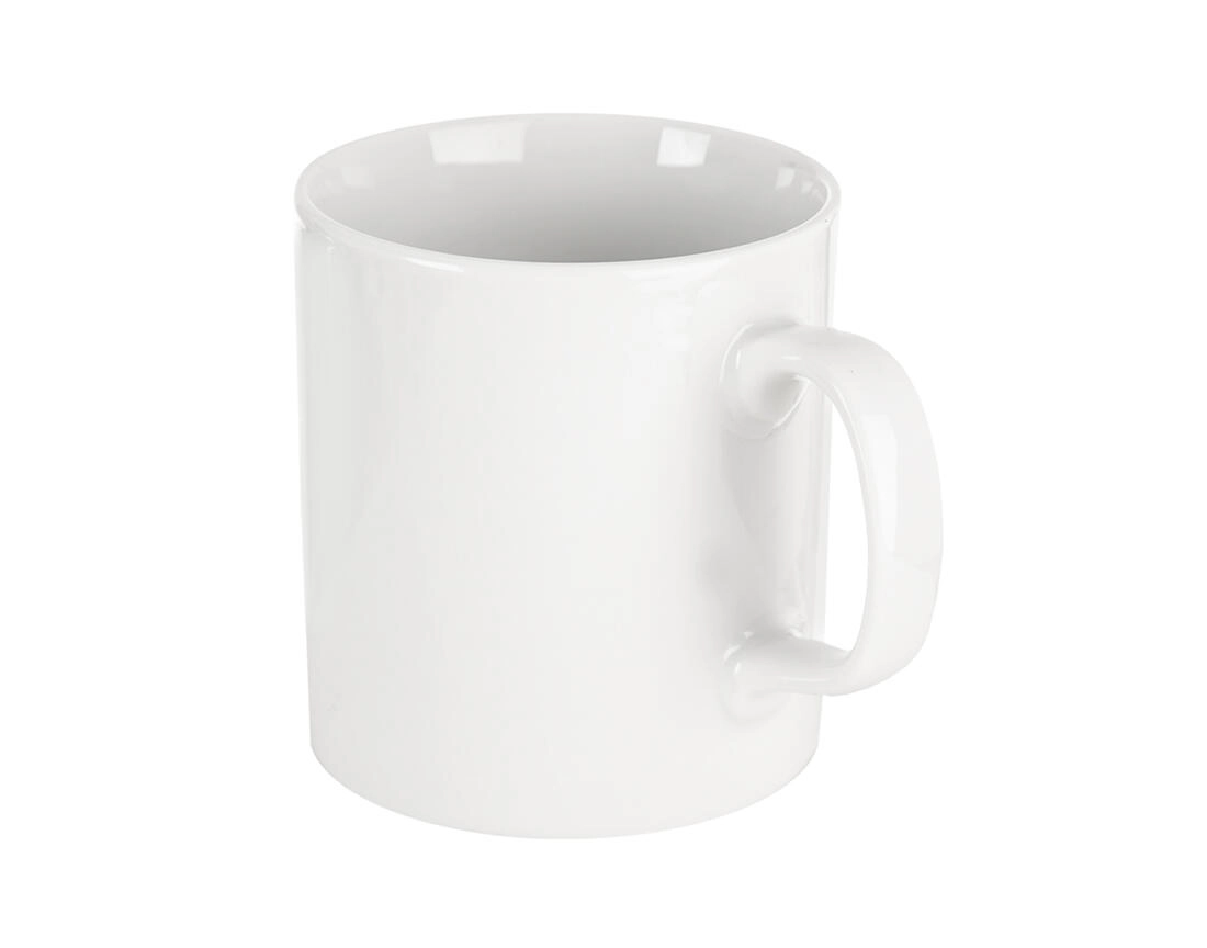 Popolnoma bela skodelica brez tiska se poda v vsako kuhinjo in jo je mogoče preprosto personalizirati s potiskom ali nalepko.