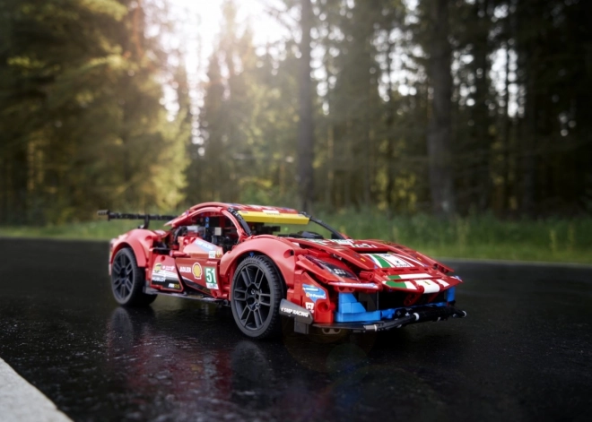 Zvest silhueti 488 GTE z nalepkami AF Corse #51, zadnjim krilom in dirkaškimi detajli, ki iz modela naredijo izrazit razstavni kos.