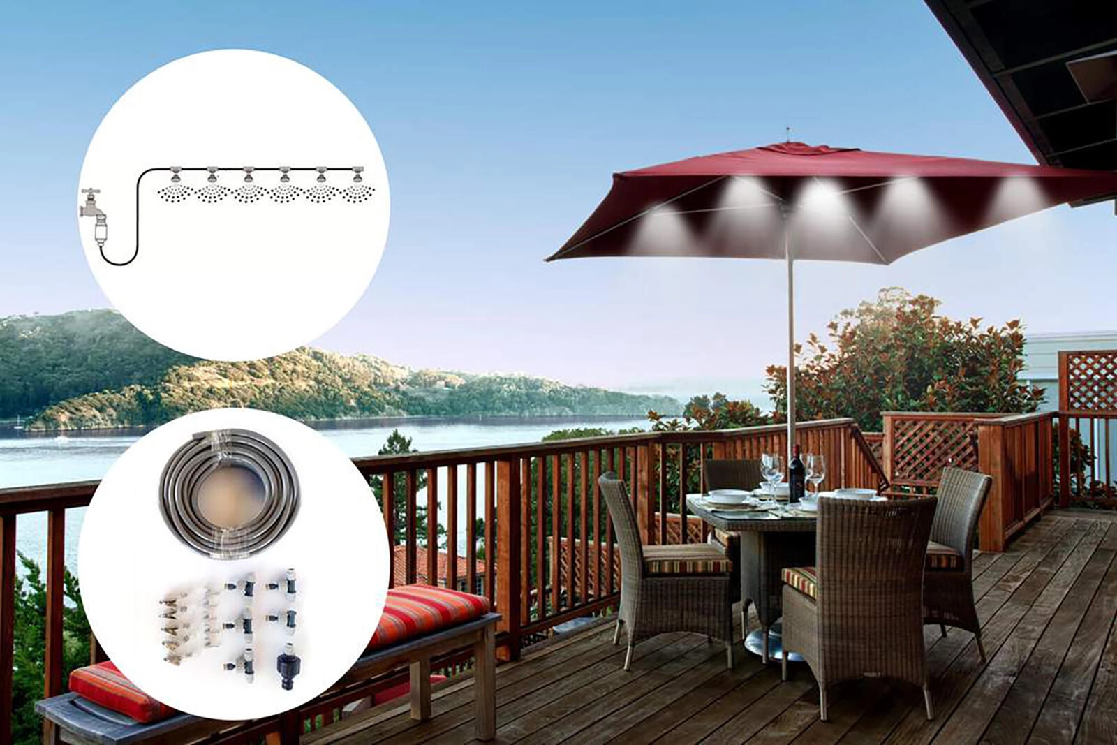 Nežno razprševanje ohladi zrak in izboljša udobje pod pergolo, na balkonu ali terasi. Idealno za poletni počitek in peko na žaru.