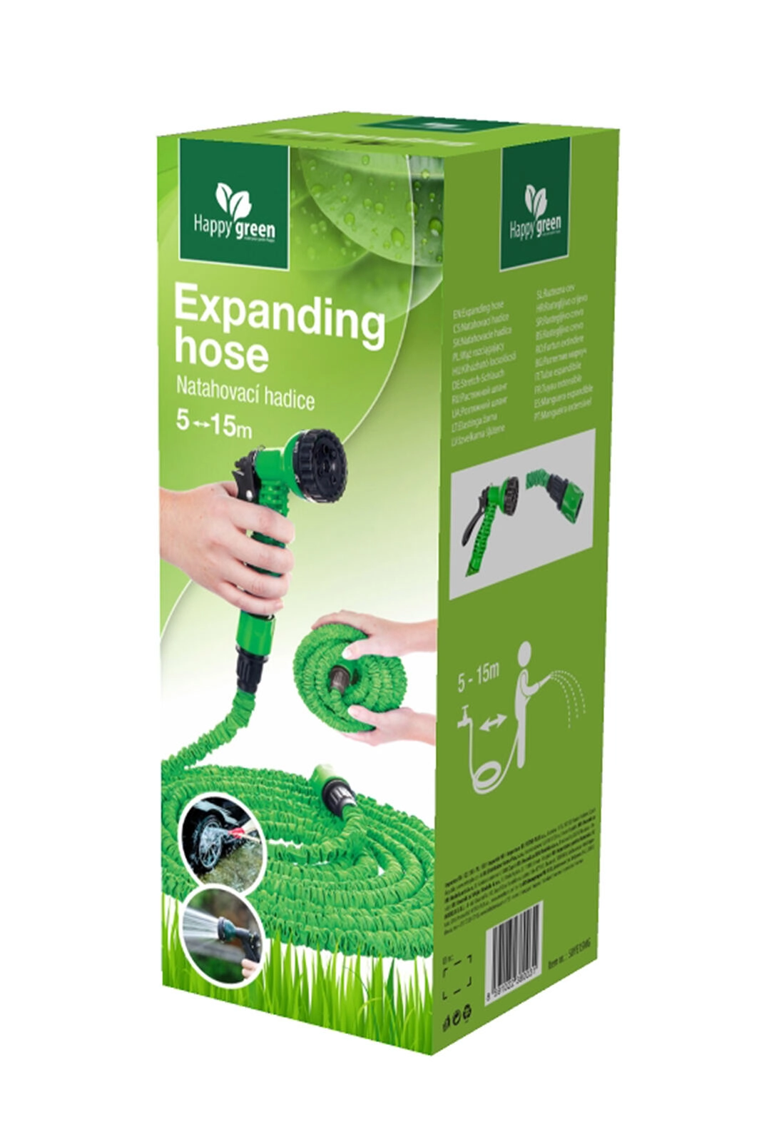 Praktična raztegljiva vrtna cev 15 m v zeleni barvi je idealna za zalivanje gredic, trat in korit. Po napolnitvi z vodo se samodejno podaljša do trikratnika svoje prvotne dolžine, je lahka, kompaktna in enostavna za uporabo. Del paketa je zalivalna pištola za udobno in natančno zalivanje.