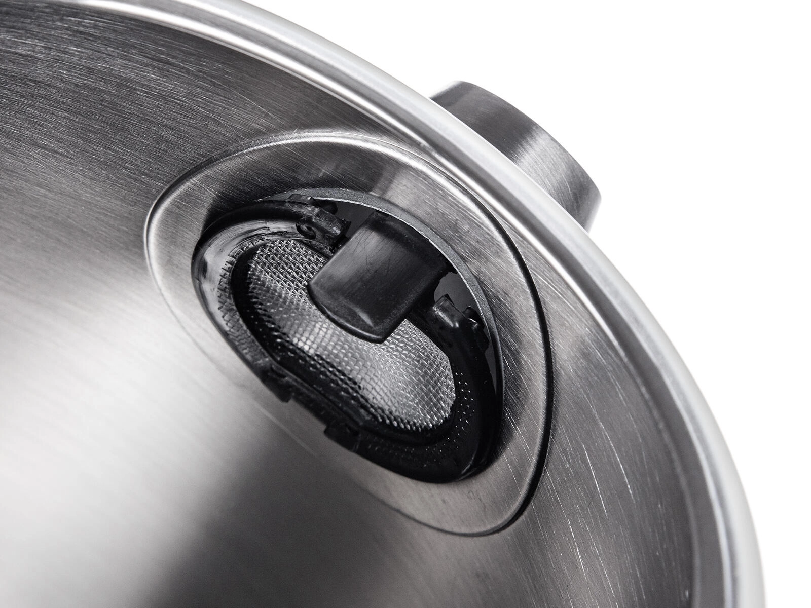 Odporno nerjavno jeklo in vgrajen filter zadržita grobe nečistoče, zato boste uživali v čisti vodi in daljši življenjski dobi aparata.