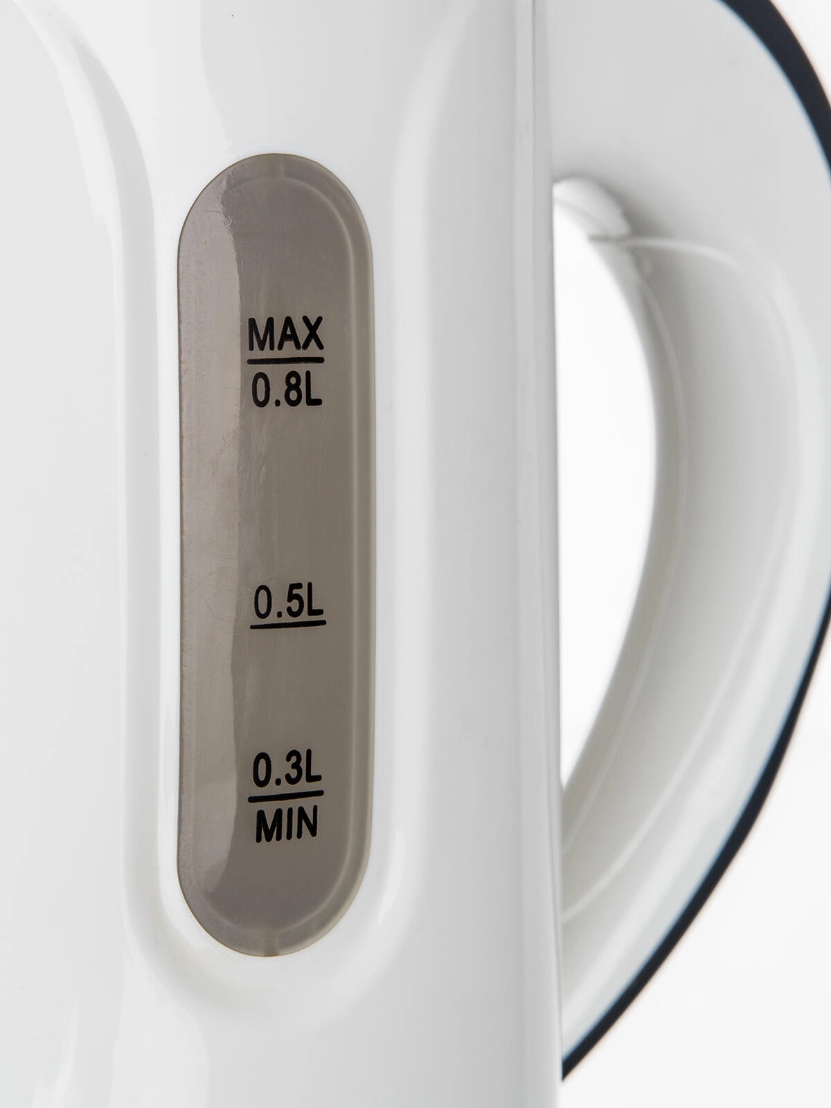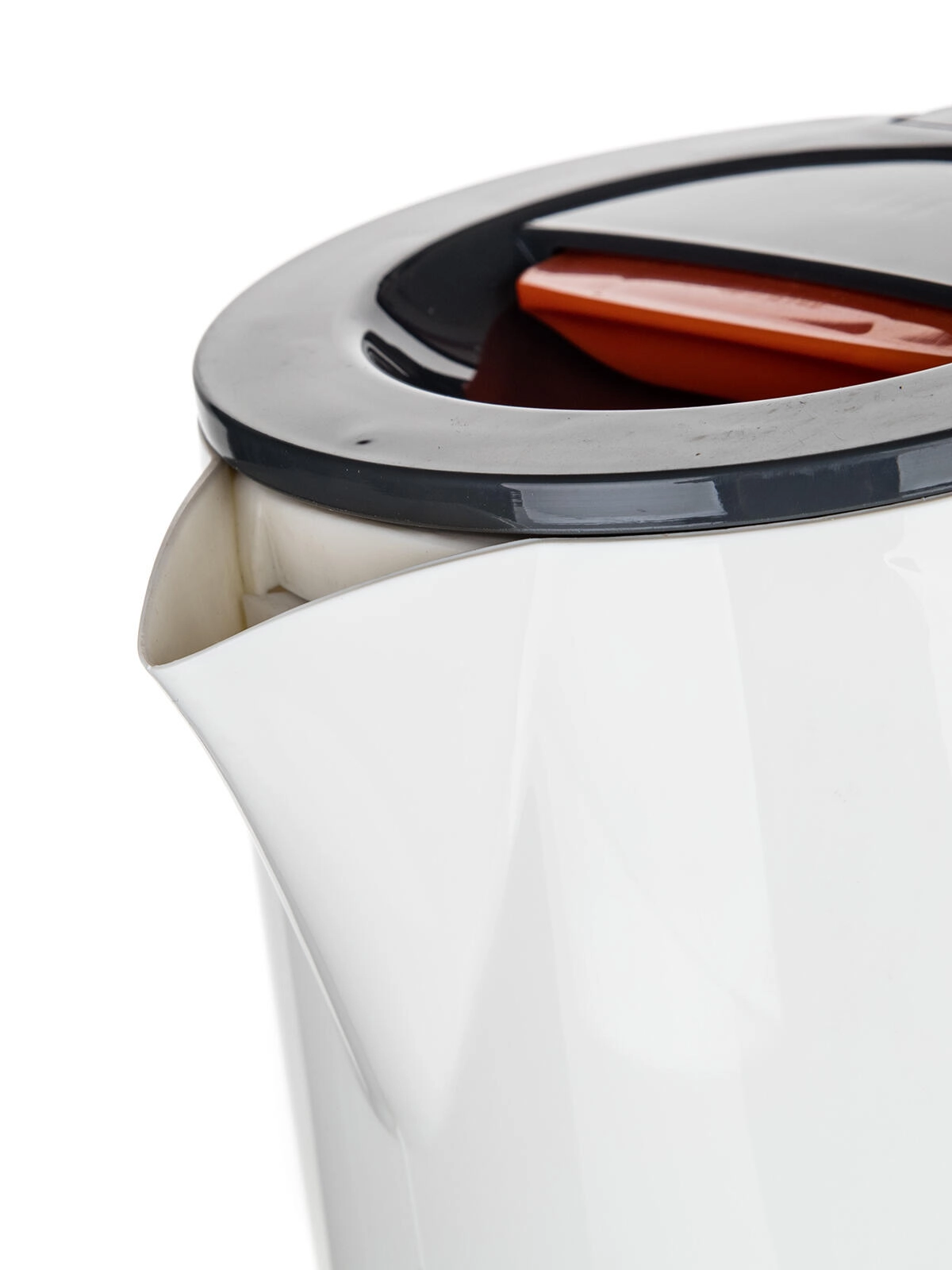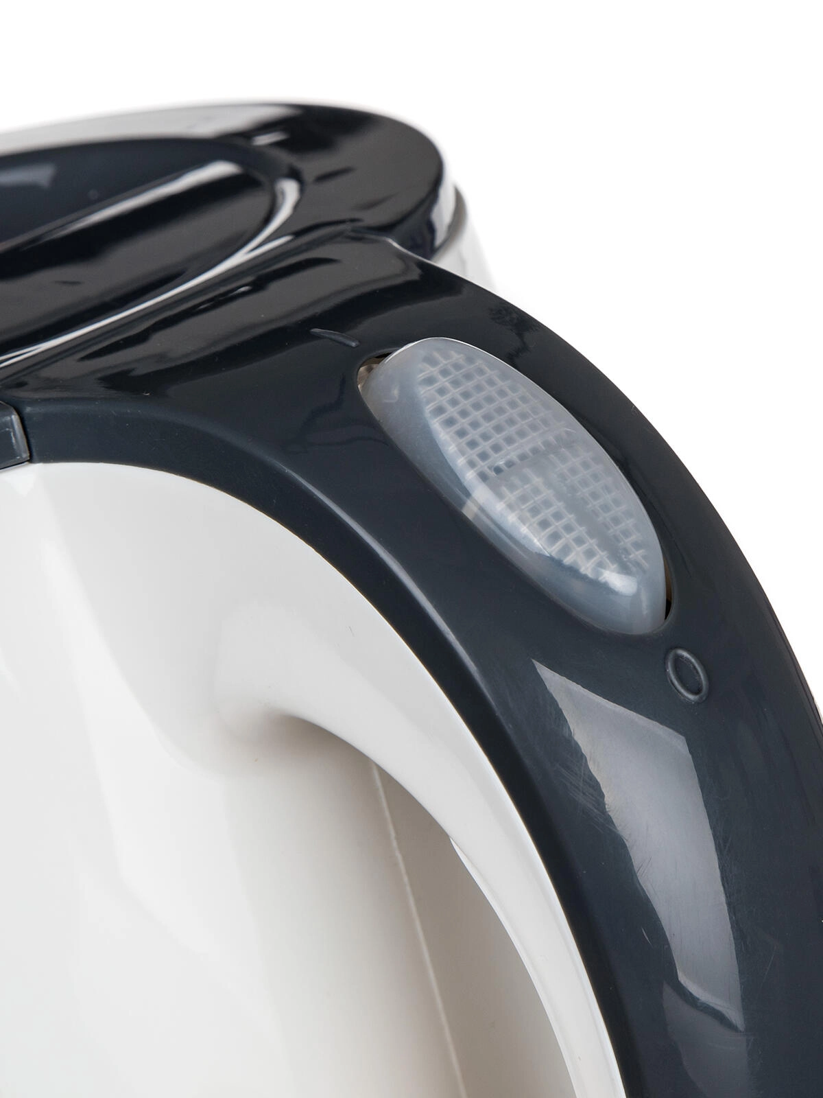 Grelnik vode SOLLA v moderni belo‑sivi izvedbi združuje kompaktne mere s praktičnimi funkcijami za vsakodnevno uporabo. Ravno nerjavno grelno dno pospeši vrenje in olajša čiščenje, medtem ko vam prozoren indikator nivoja pomaga natančno odmeriti potrebno količino vode.