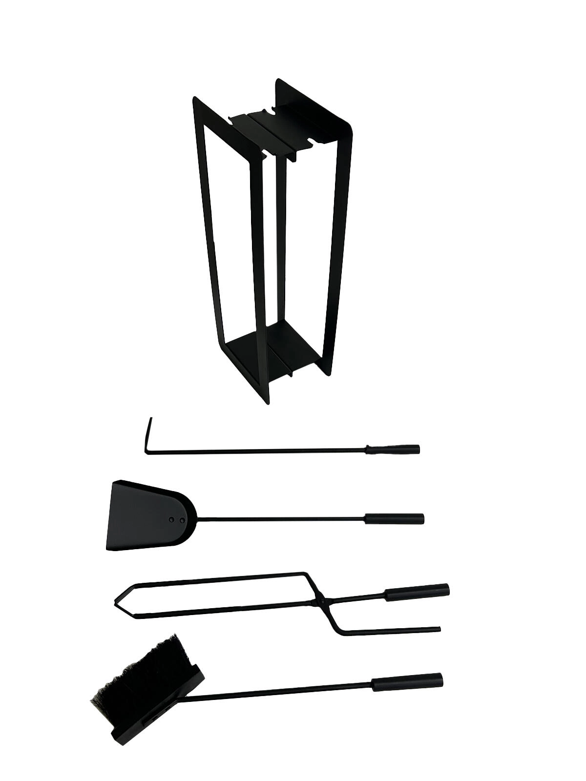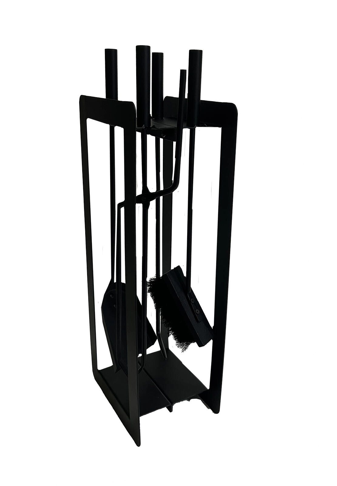 Ta stilski in vzdržljiv komplet kaminskega orodja je idealen dodatek k vsakemu kaminu in peči. Kovinska izvedba v mat črni barvi se odlično poda tako v moderne kot tradicionalne interierje, praktično odprto stojalo pa ohranja vse pregledno na dosegu roke. Dolgi ročaji zagotavljajo udobno in varno uporabo tudi pri višjih temperaturah.
