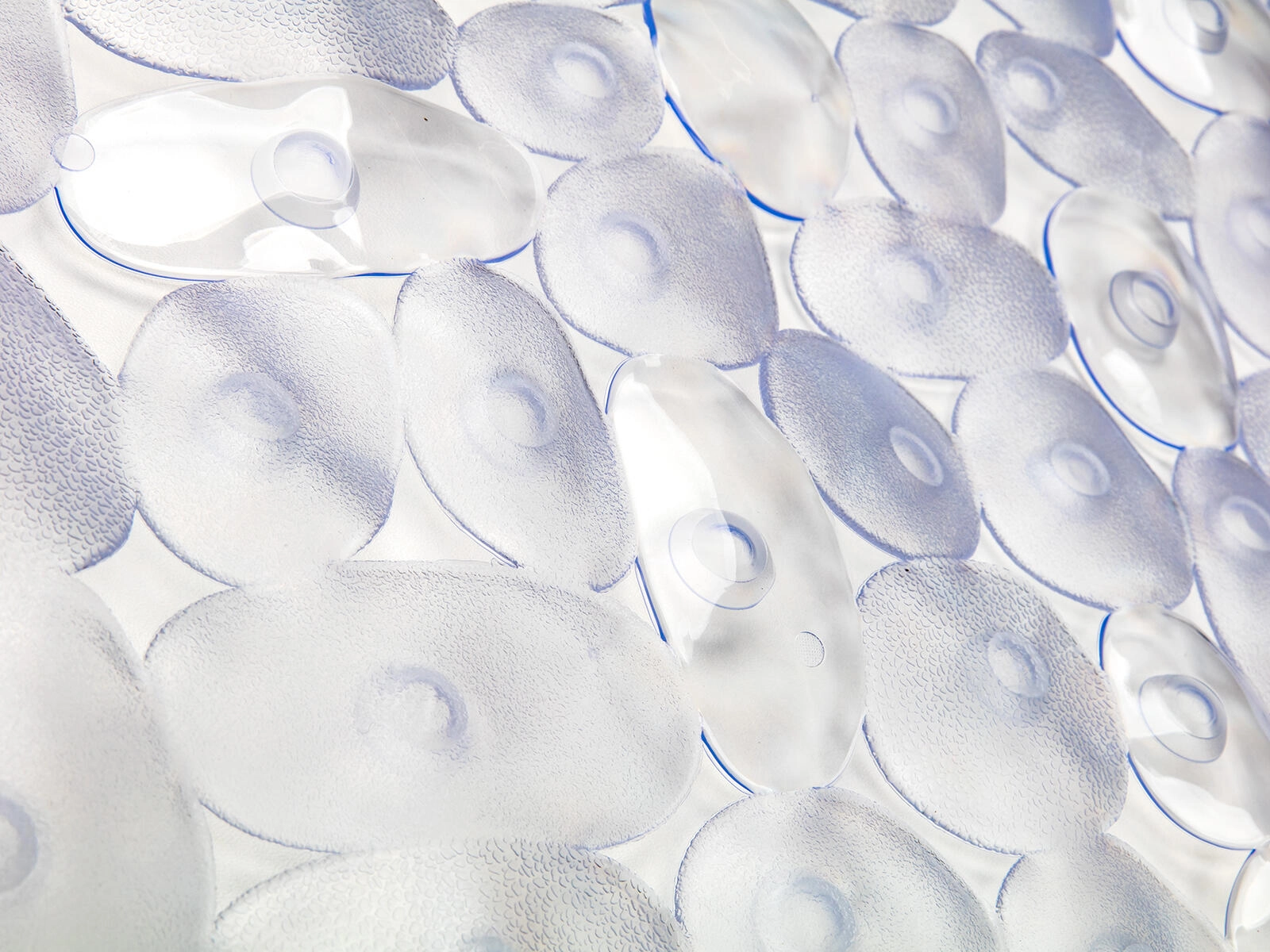 Desetine priseskov na spodnji strani podlogo trdno držijo na mestu in občutno zmanjšajo tveganje zdrsa na mokri površini.
