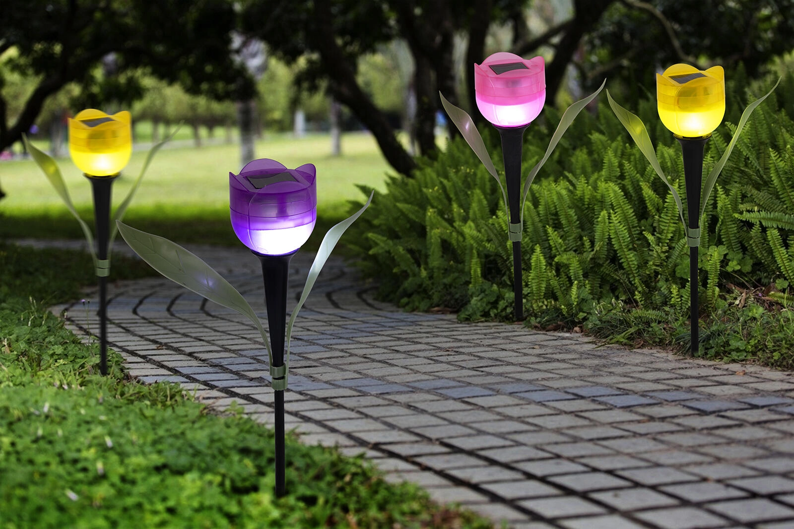 Okrasite svoj vrt s stilno svetlobo brez kablov. Sončna vrtna svetilka v obliki tulipana z belo LED in zaščito IP44 nežno osvetli potke, terase ali grede. Zahvaljujoč sončnemu panelu se čez dan polni in zvečer samodejno sveti – varčno, okolju prijazno in brez vzdrževanja.