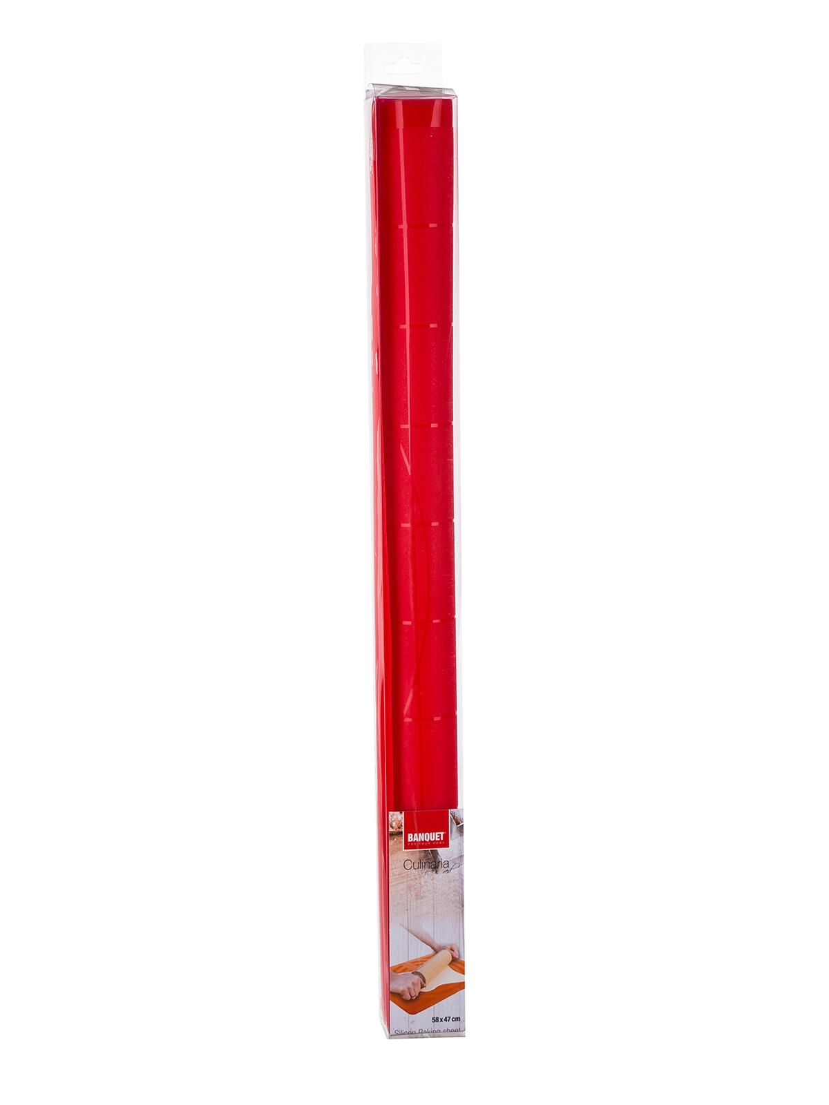 Silikonska podloga Culinaria v elegantni rdeči barvi poenostavi vsako peko. Protizdrsna površina trdno drži na delovni plošči, testo se pri valjanju ne lepi. Vgrajen merilni relief omogoča natančno oblikovanje testa brez dodatnega pripomočka.