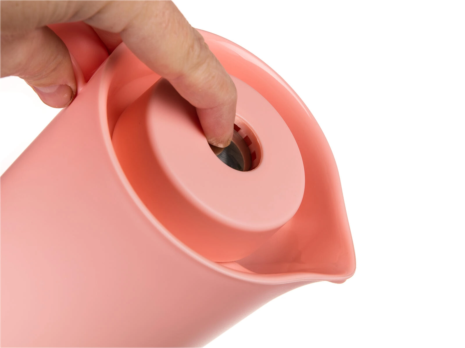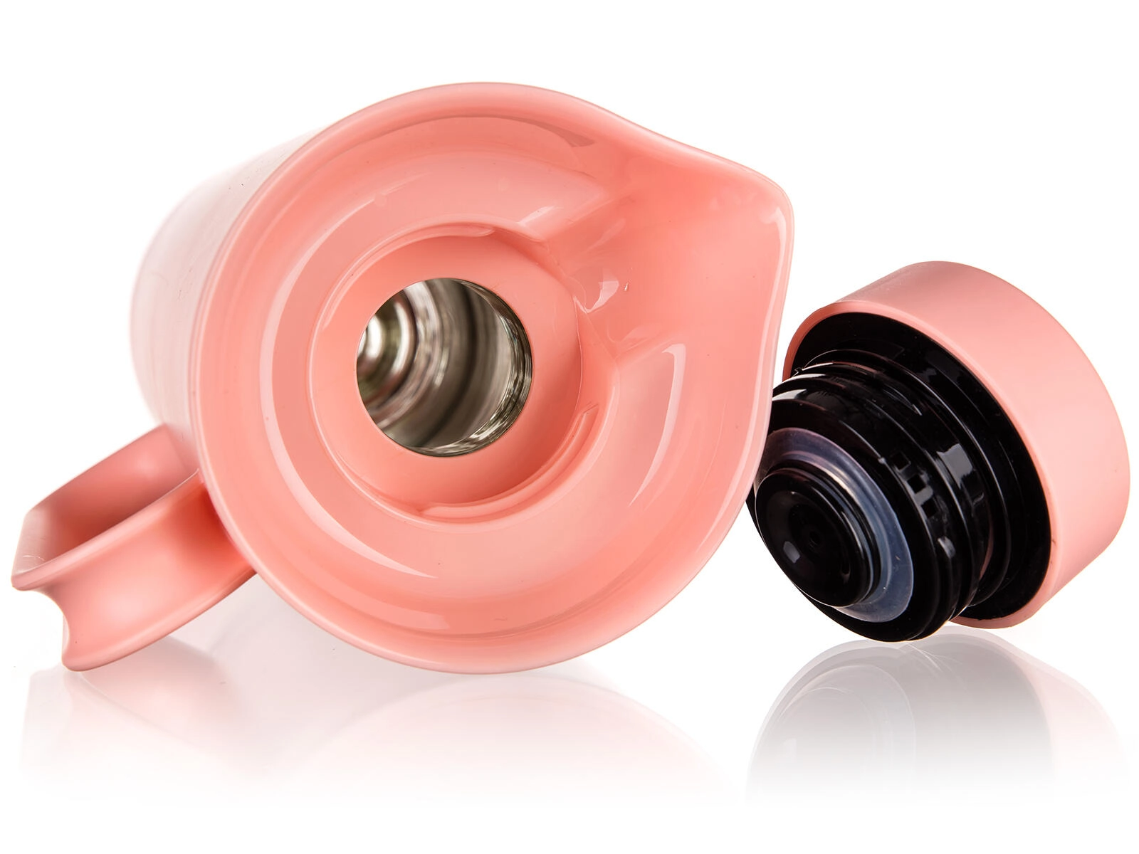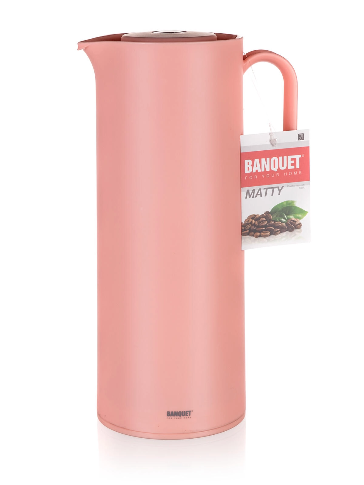 Stilski rožnat termovrč BANQUET Matty s prostornino 1 l ohranja vaše napitke dolgo tople ali hladne. Ima stekleni termoizolacijski vložek, odporno plastično ohišje in praktičen pokrov za udobno točenje brez polivanja. Idealno za pisarno, dom in za serviranje ob obiskih.