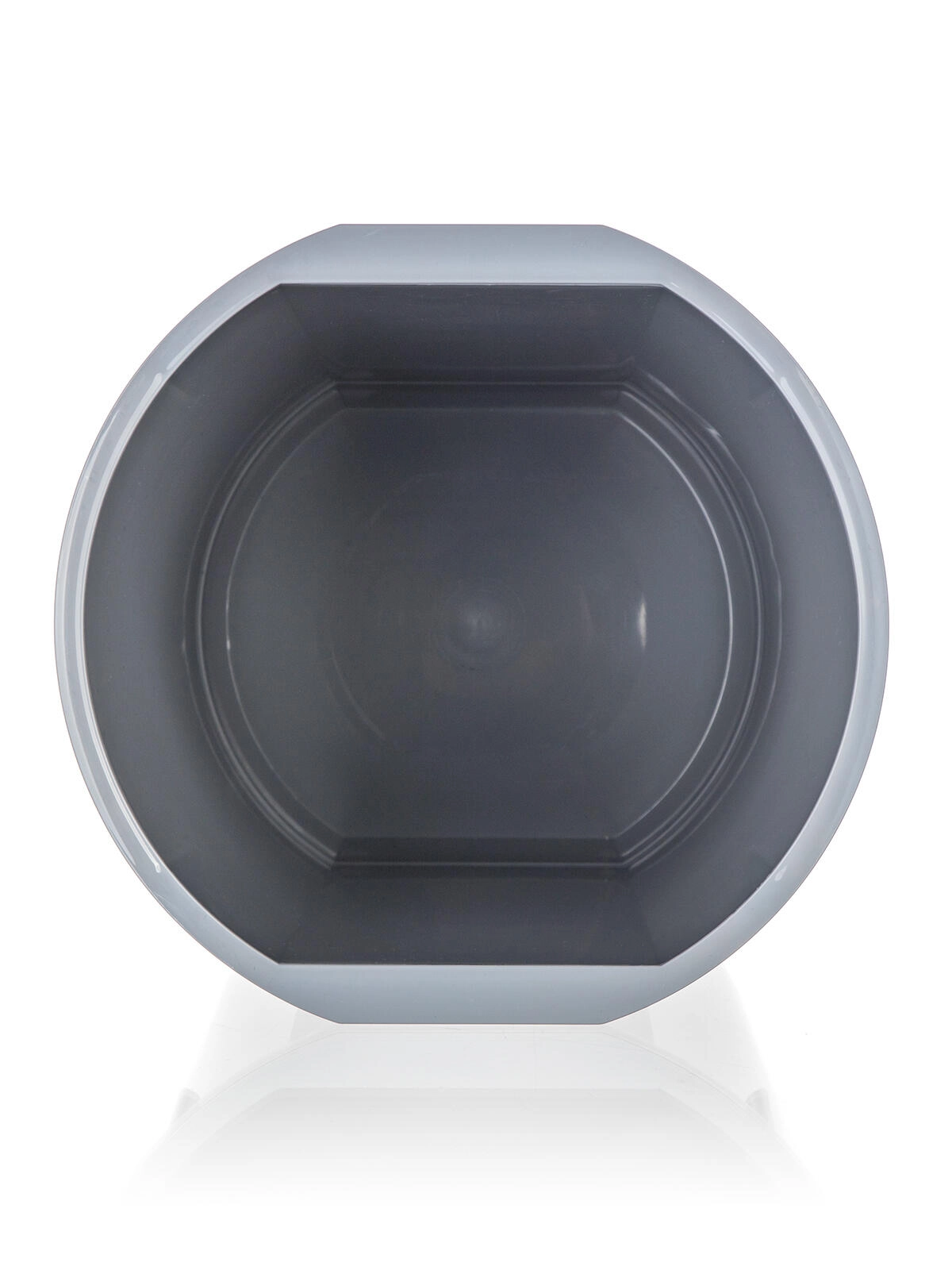 Okrogla zasnova se zlahka prilega kopalnici, kuhinjskemu kotičku ali pisarni, diskretna siva barva pa se ujema z interierjem.