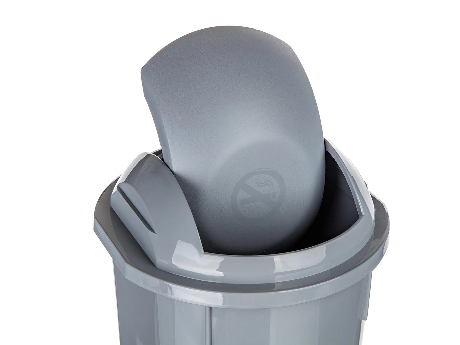 Gladke plastične površine se preprosto vzdržujejo in ne absorbirajo vonjav. Nagibni pokrov se sam vrne v zaprti položaj, zato ohranja red in zmanjšuje neprijetne vonjave. Koš je primeren za gospodinjstvo, pisarno in javne prostore.