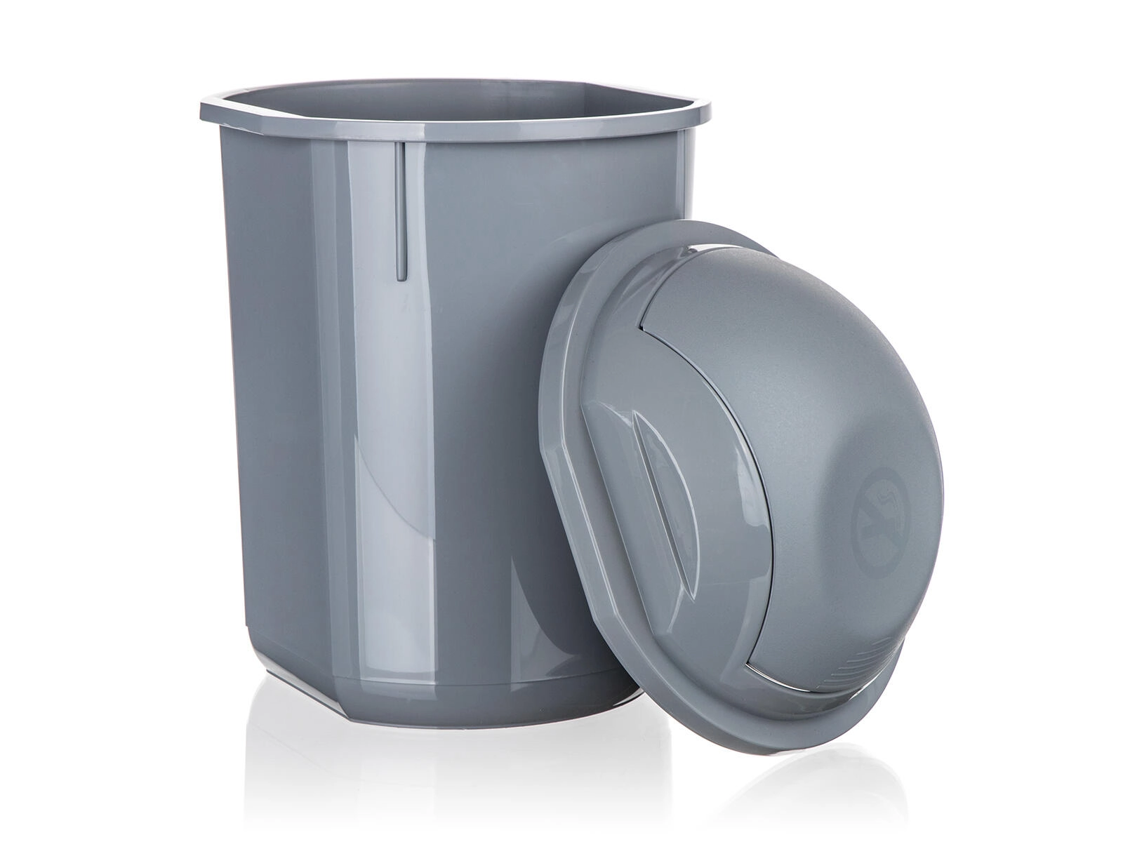 Praktičen nagibni koš s prostornino 8 litrov ponuja čist dizajn in funkcionalno zapiranje, ki omogoča hitro in higiensko odlaganje odpadkov brez nepotrebnega stika. Zaradi kompaktnih mer se prilega tudi manjšim prostorom, siva barva pa se zlahka ujema s katerim koli interierjem.