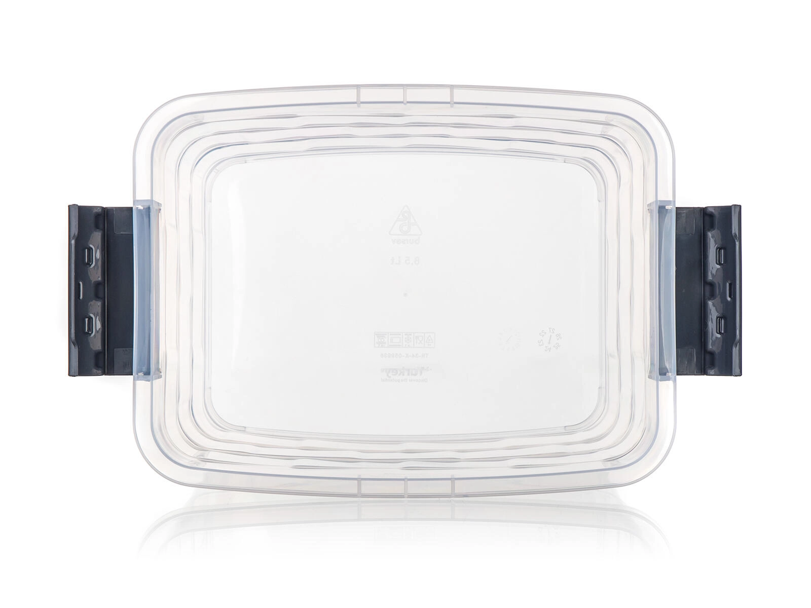 Shranjevalni zaboj VILARD s prostornino 8,5 l ponuja vsestransko uporabo za dom, pisarno ali delavnico. Prozorna izvedba omogoča hitro orientacijo v vsebini, medtem ko pokrov s sponkami vse varno drži na mestu. Praktičen ročaj olajša prenašanje med prostori ali na potovanjih.