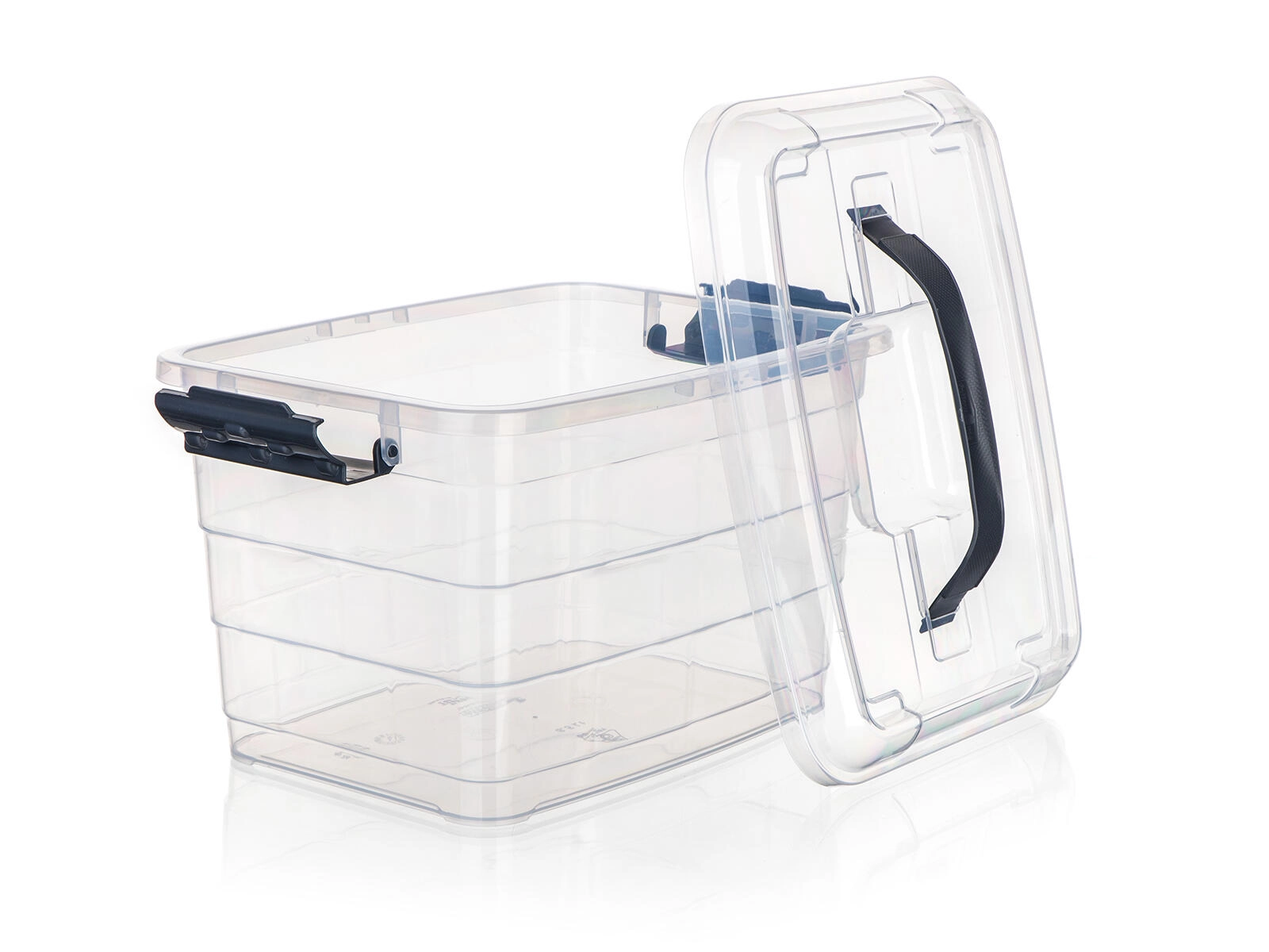 Praktičen shranjevalni zaboj VILARD s prostornino 8,5 l je idealen za pregledno shranjevanje in enostavno prenašanje stvari. Zahvaljujoč prozornemu ohišju imate vsebino vedno na očeh, varni sponki zanesljivo zapreta pokrov, čvrst ročaj pa zagotavlja udobno rokovanje doma, v pisarni in na poti.