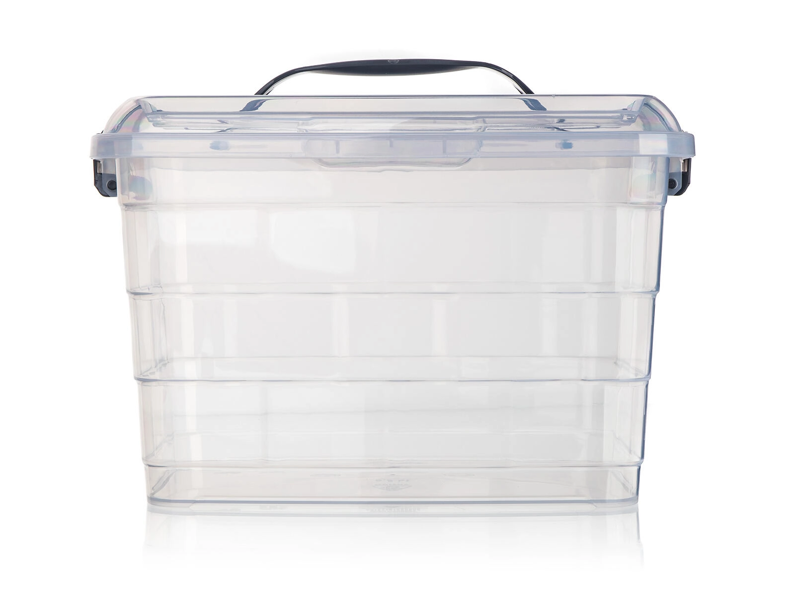 Prosojne stene omogočajo takojšen pregled vsebine brez odpiranja pokrova – idealno za hitro organizacijo doma in v pisarni.