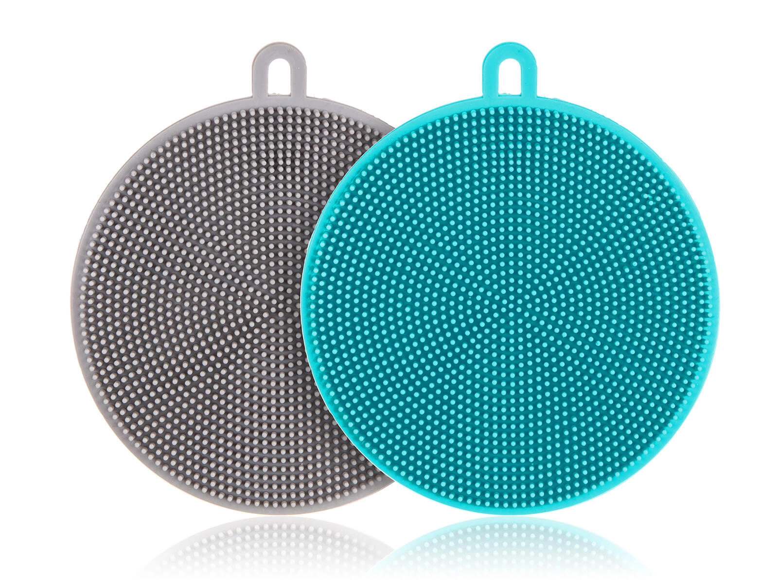 Praktičen 2-delni set silikonskih gobic je idealen za vsakodnevno pomivanje posode, loncev in ponev. Goste prožne ščetinice učinkovito odstranijo ostanke hrane, ne da bi poškodovale površine z nelepljivo obdelavo. Gobice so izdelane iz kakovostnega, na toploto odpornega silikona in jih je mogoče udobno pomivati v pomivalnem stroju.