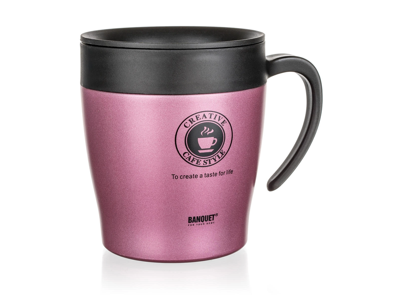 Uživajte v kavi ali čaju kjerkoli in kadarkoli. Termolonček Tazza ponuja vakuumsko dvoslojno telo za boljšo toplotno izolacijo in zanesljivo ohranjanje temperature. Zunanji plašč iz nerjavnega jekla 201 in notranjost iz kakovostnega nerjavnega jekla 304 zagotavljata odpornost, higieno in enostavno čiščenje. Rožnata kovinska obdelava doda moderen videz, ki izstopa na pisalni mizi ali v avtomobilskem držalu.