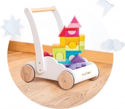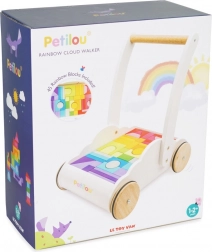Voziček z mavričnimi kockami Petilou je zasnovan tako, da otrokom pri prvih korakih vliva samozavest in zagotavlja stabilnost. Opremljen je z 45 kockami v različnih mavričnih odtenkih, ki podpirajo razvoj prostorske predstavljivosti, spretnosti in motorike.