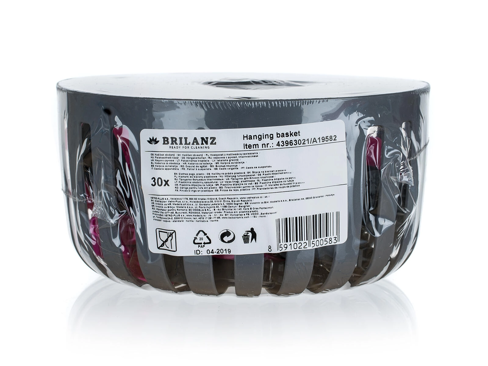 Ohranite red pri sušenju perila z visečo košaro BRILANZ s 30 ščipalkami. Košaro s kljukico preprosto obesite na vrv ali palico, odprte letvice zagotavljajo dobro kroženje zraka in odtekanje vode. Ščipalke iz trpežne plastike zanesljivo držijo perilo in so idealne za vsakodnevno uporabo doma in na balkonu.