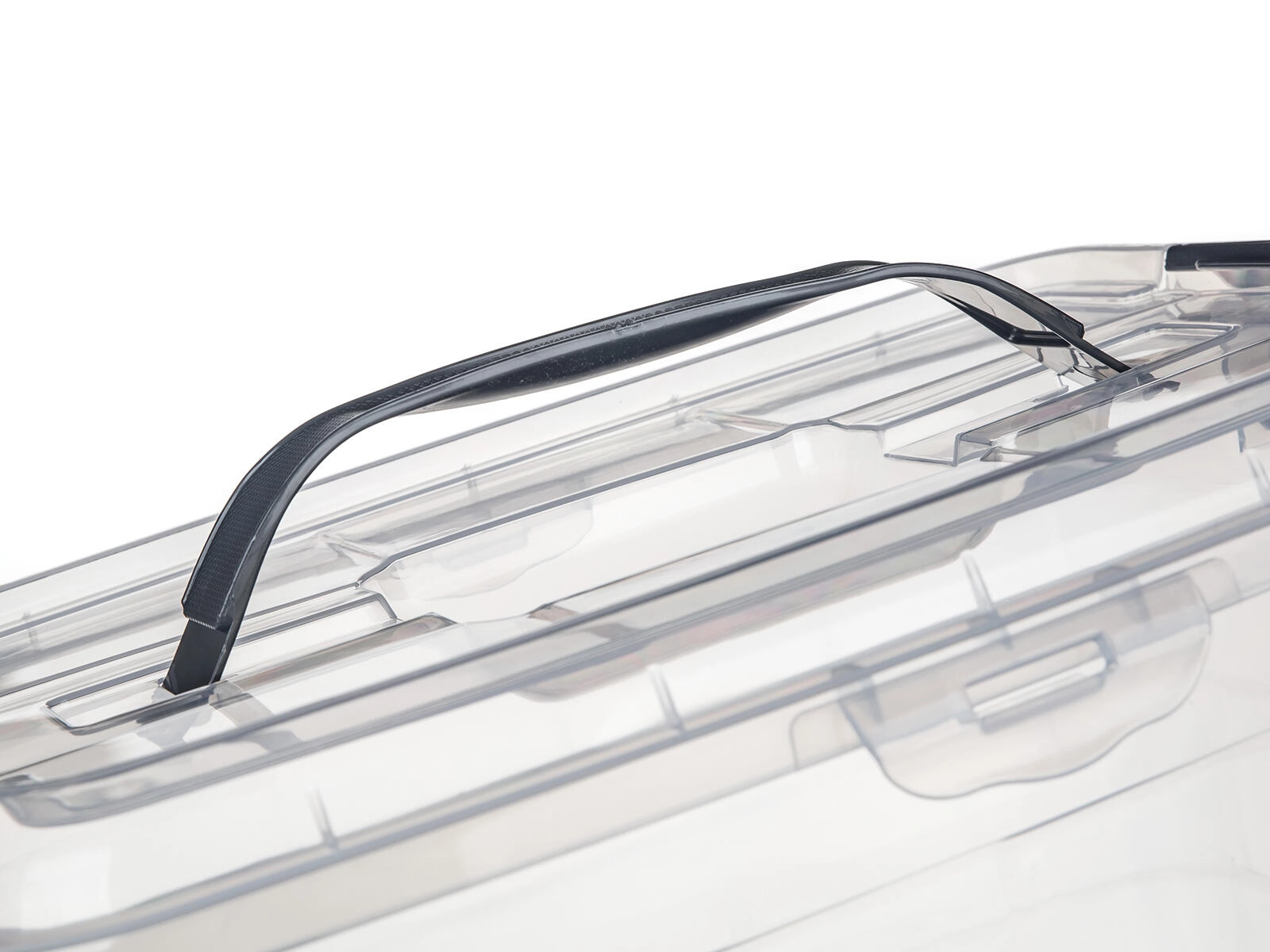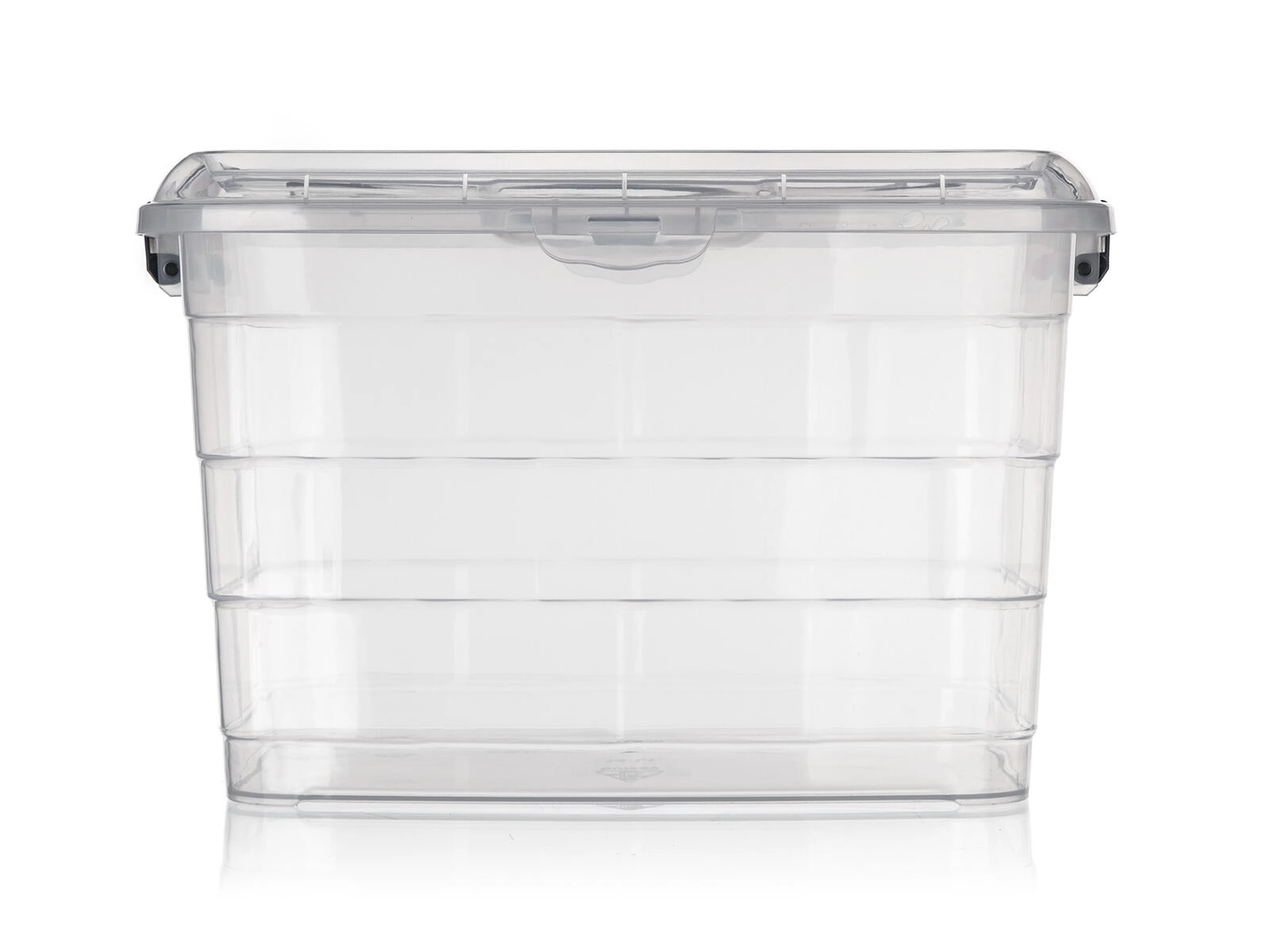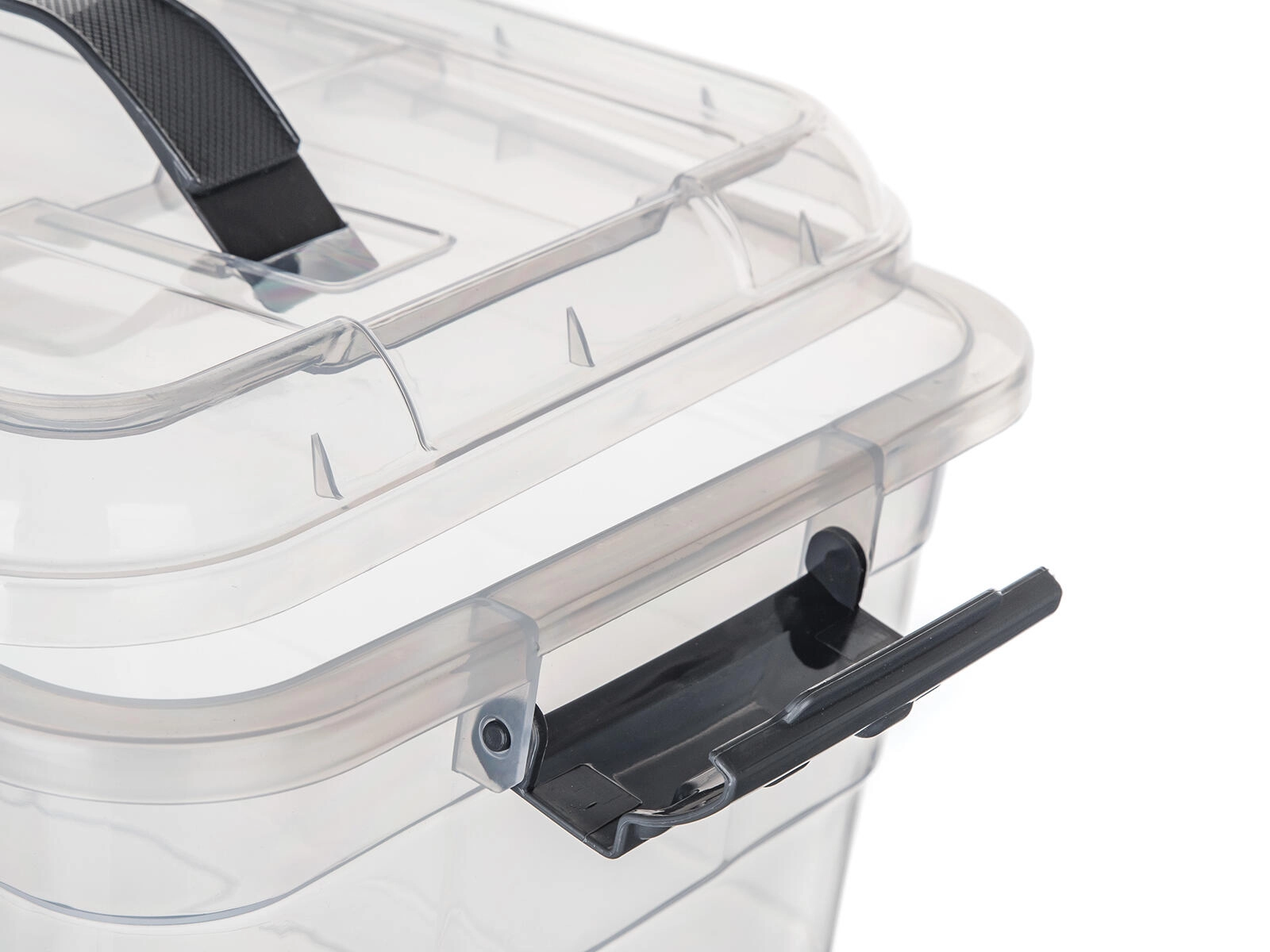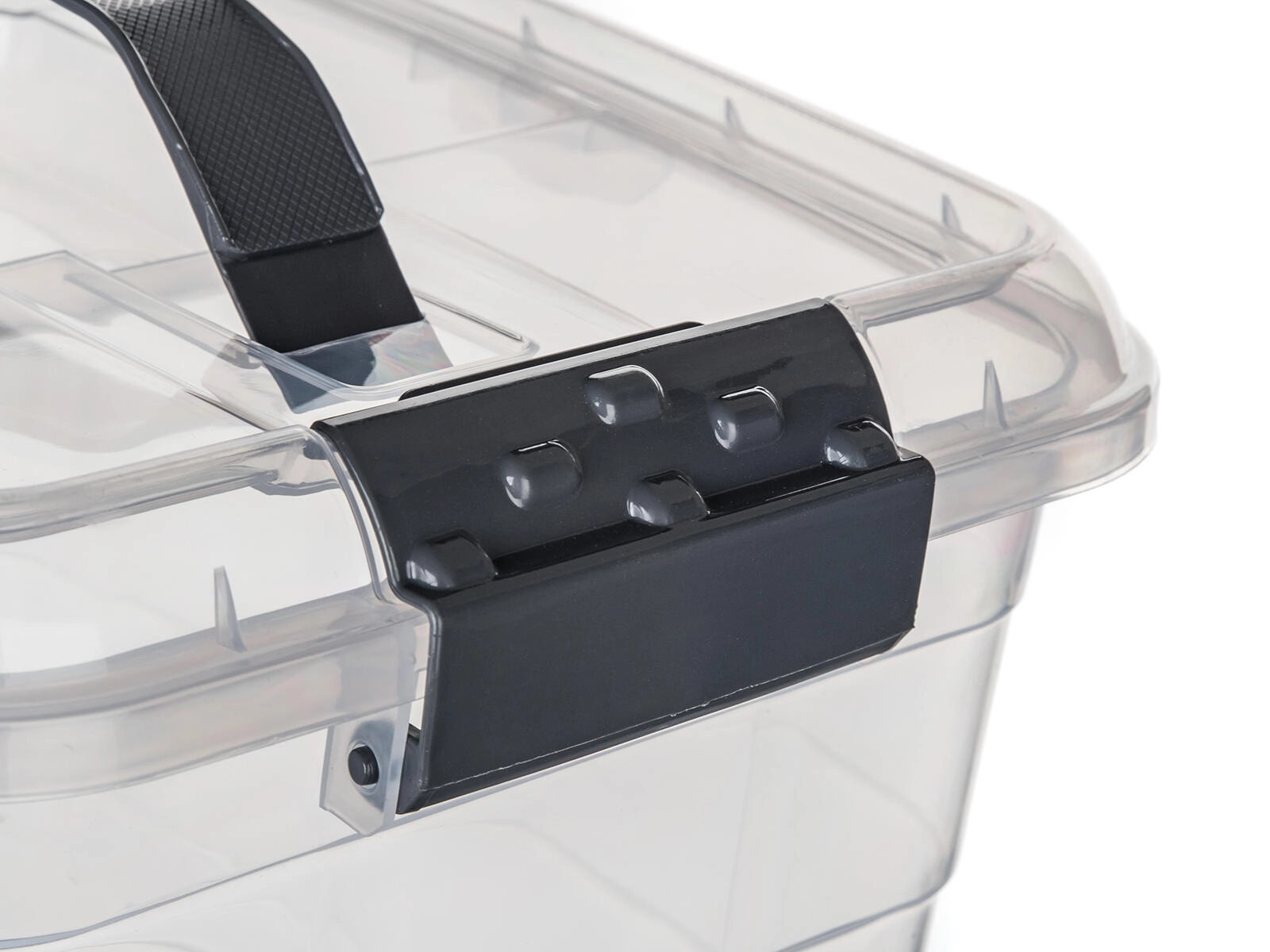 Stranske sponke v dimljenem videzu zagotavljajo zanesljivo zapiranje pokrova, zato se vsebina med prenašanjem ne razsuje in ostane zaščitena pred prahom.