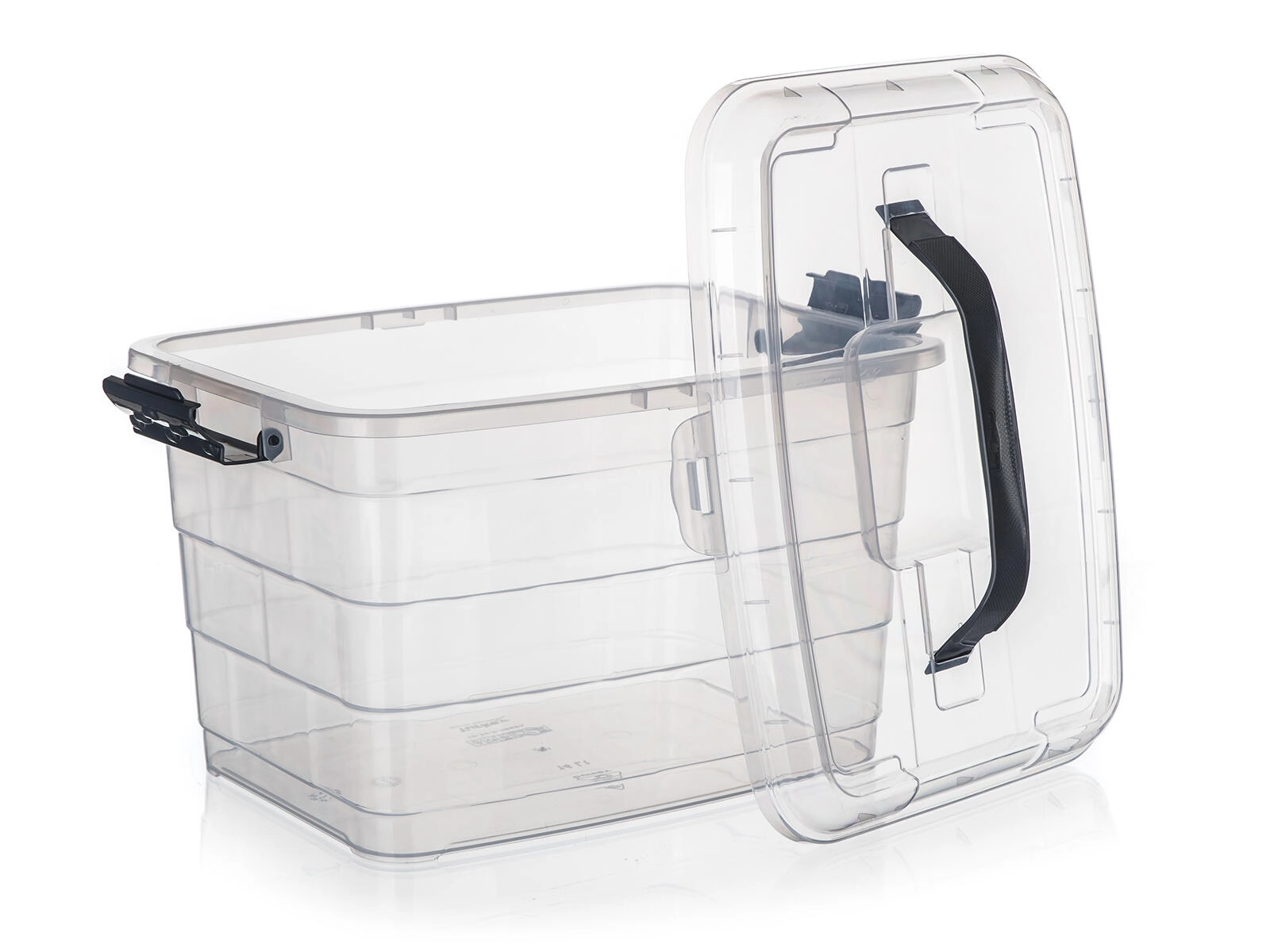 Praktična shranjevalna škatla VILARD s prostornino 14 l s prozornim ohišjem, trdnimi stranskimi sponkami in udobnim ročajem za enostavno prenašanje. Idealna za pregledno shranjevanje in varno prenašanje domačih ter pisarniških potrebščin. Zahvaljujoč prozornemu izvedbenemu materialu boste vedno hitro našli, kar potrebujete.