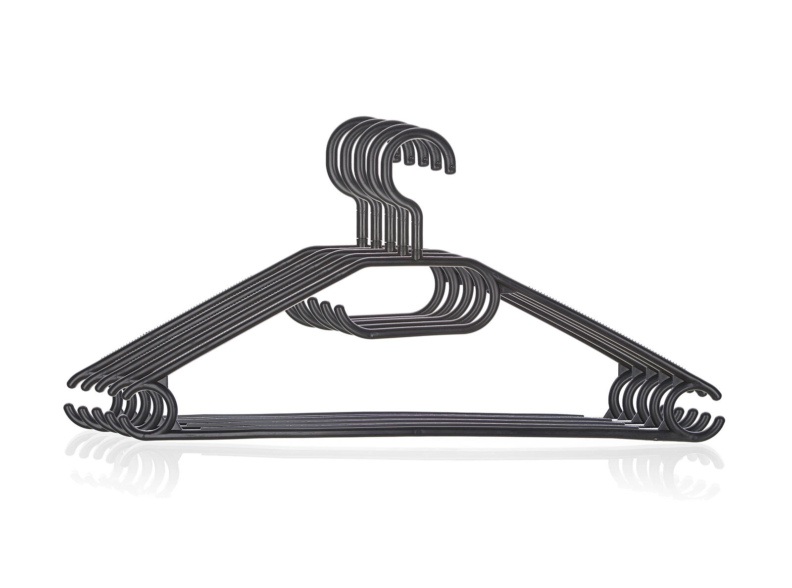 Ohranite garderobo pregledno in elegantno. Ta komplet plastičnih obešal v črni barvi ponuja vrtljiv kaveljček za udobno obešanje in rokovanje. Dolžina 40 cm je idealna za srajce, majice in lažje zgornje dele ter pomaga ohranjati oblačila brez nepotrebnih gub.