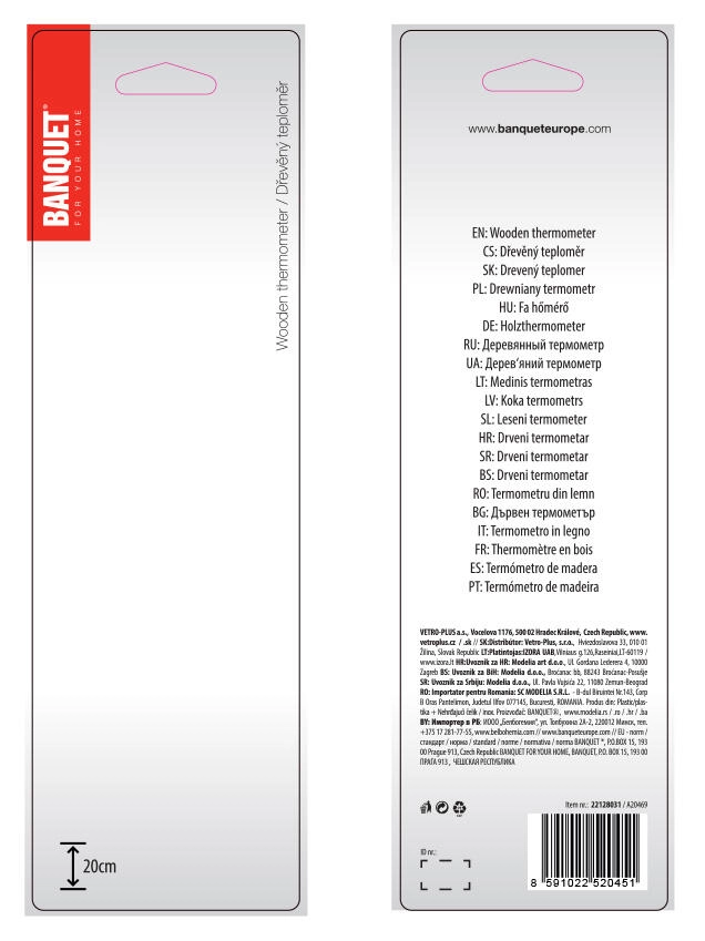 Praktičen stenski termometer iz kakovostnega svetlega lesa meri temperaturo v dveh lestvicah – °C (-20 do +50) in °F (0 do +120). Zahvaljujoč očesu za obešanje ga zlahka namestite doma, na vikendu ali v pisarni.