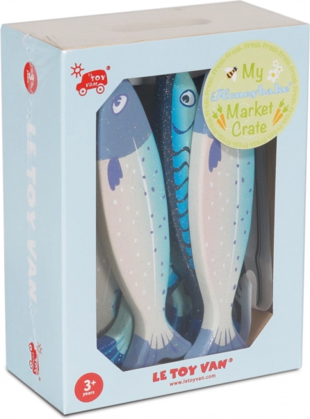 Ta lesena škatla z ribicami je popolna za igro vlog ter izobraževanje o različnih vrstah hrane. Podpira zdrave prehranjevalne navade in je odličen dodatek vsaki otroški kuhinji ali prodajnemu stojnic.
