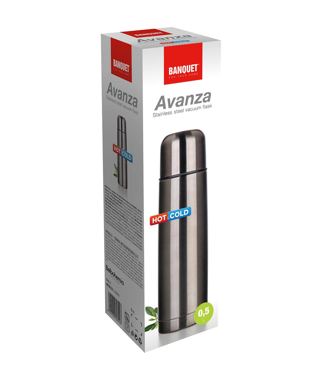 Kompaktna in trpežna nerjaveča termovka AVANZA s prostornino 0,5 l vaše napitke dolgo ohrani vroče ali hladne. Zahvaljujoč dvojni vakuumski izolaciji, praktičnemu zapiranju na gumb za točenje z enim pritiskom in pokrovu, ki služi kot skodelica, je idealna za potovanja, v službo in na izlete.