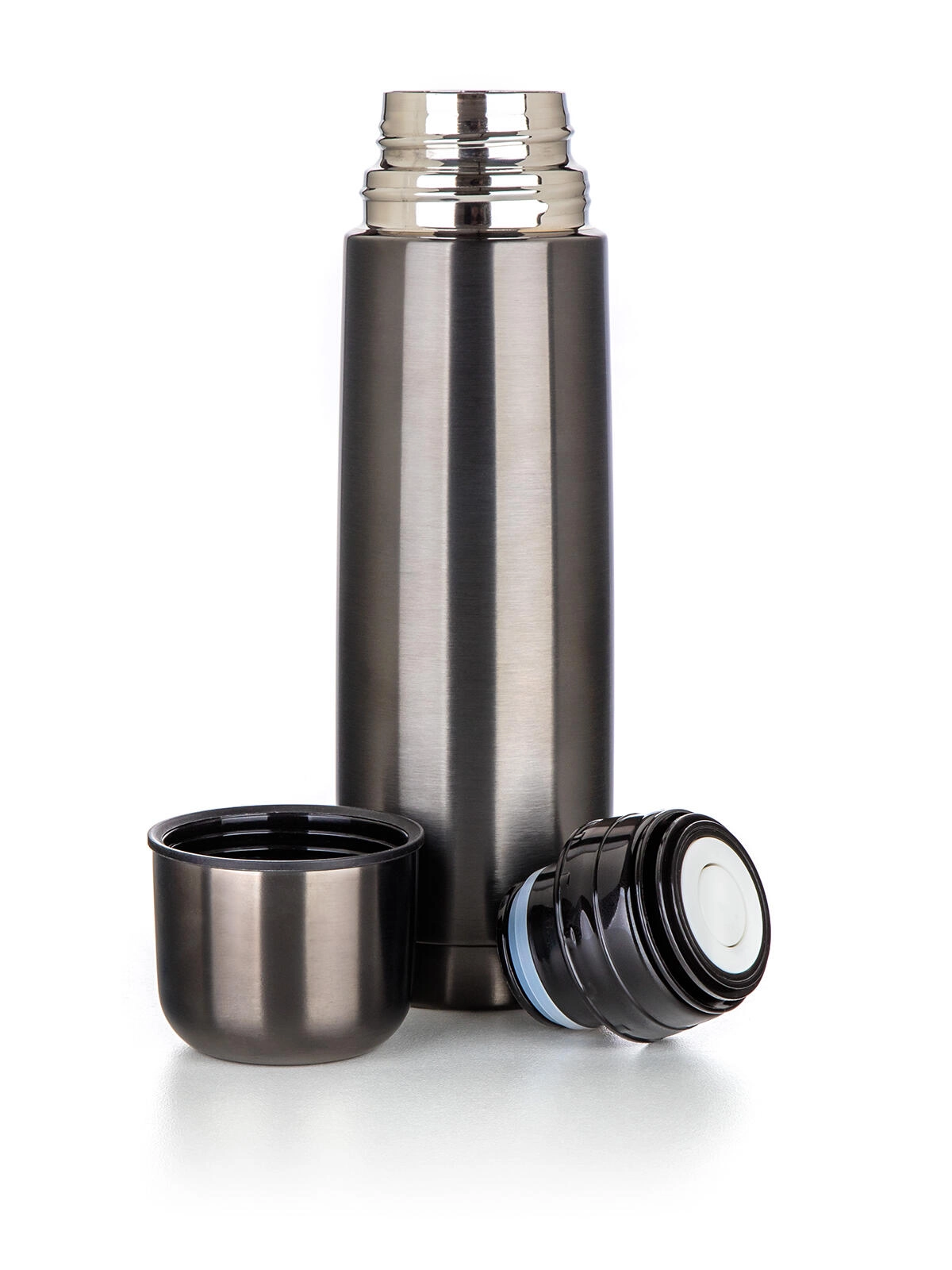 Termovka AVANZA v elegantni kovinsko črni barvi je izdelana iz trpežnega nerjavečega jekla (zunanja in notranja površina). Dvojna vakuumska konstrukcija učinkovito zmanjšuje izgubo toplote in hladu, zato boste svoj najljubši napitek dlje časa uživali pri pravilni temperaturi. Navojni zapirač z gumbom omogoča varno in udobno točenje brez nepotrebnega odvijanja.