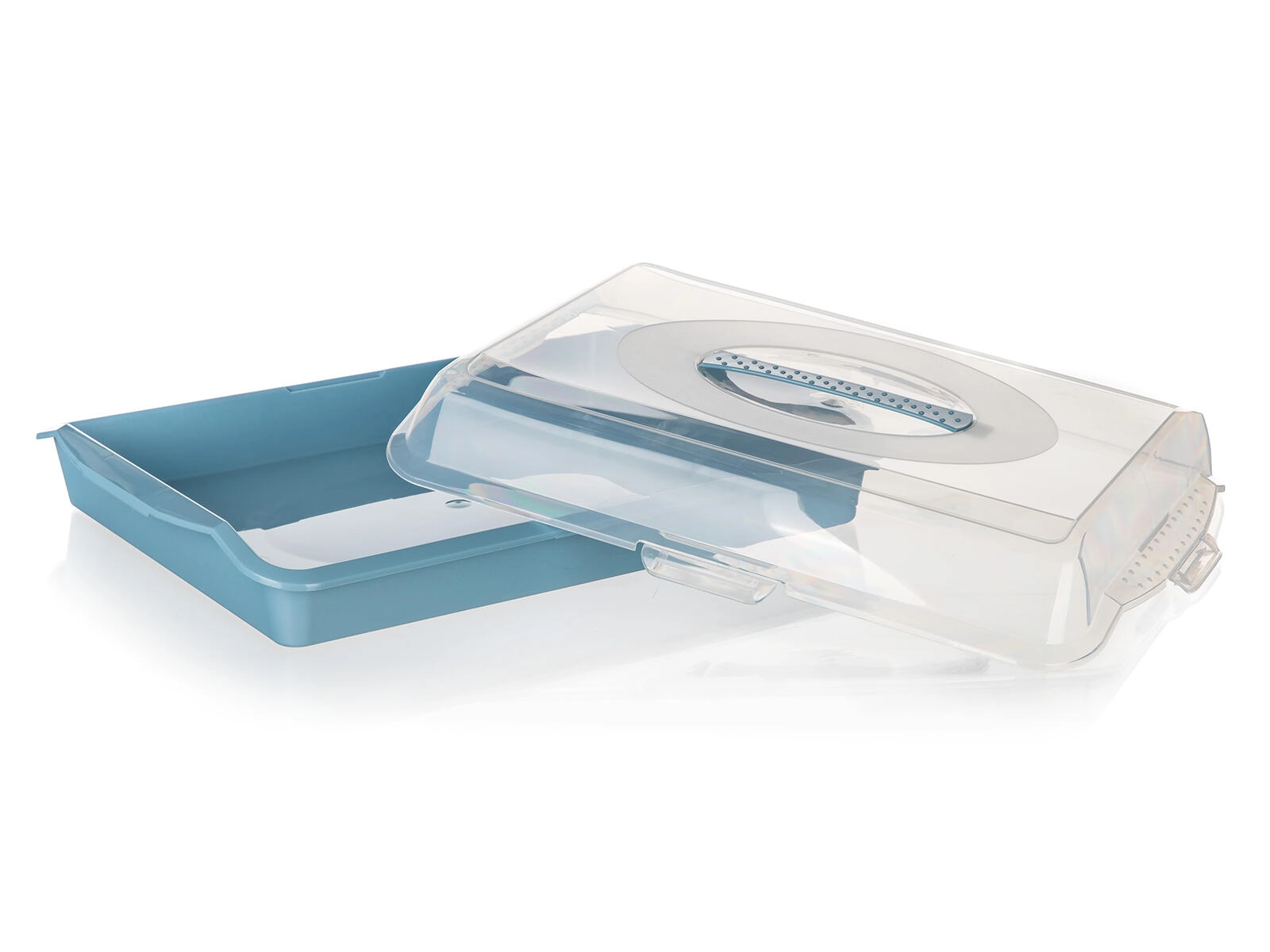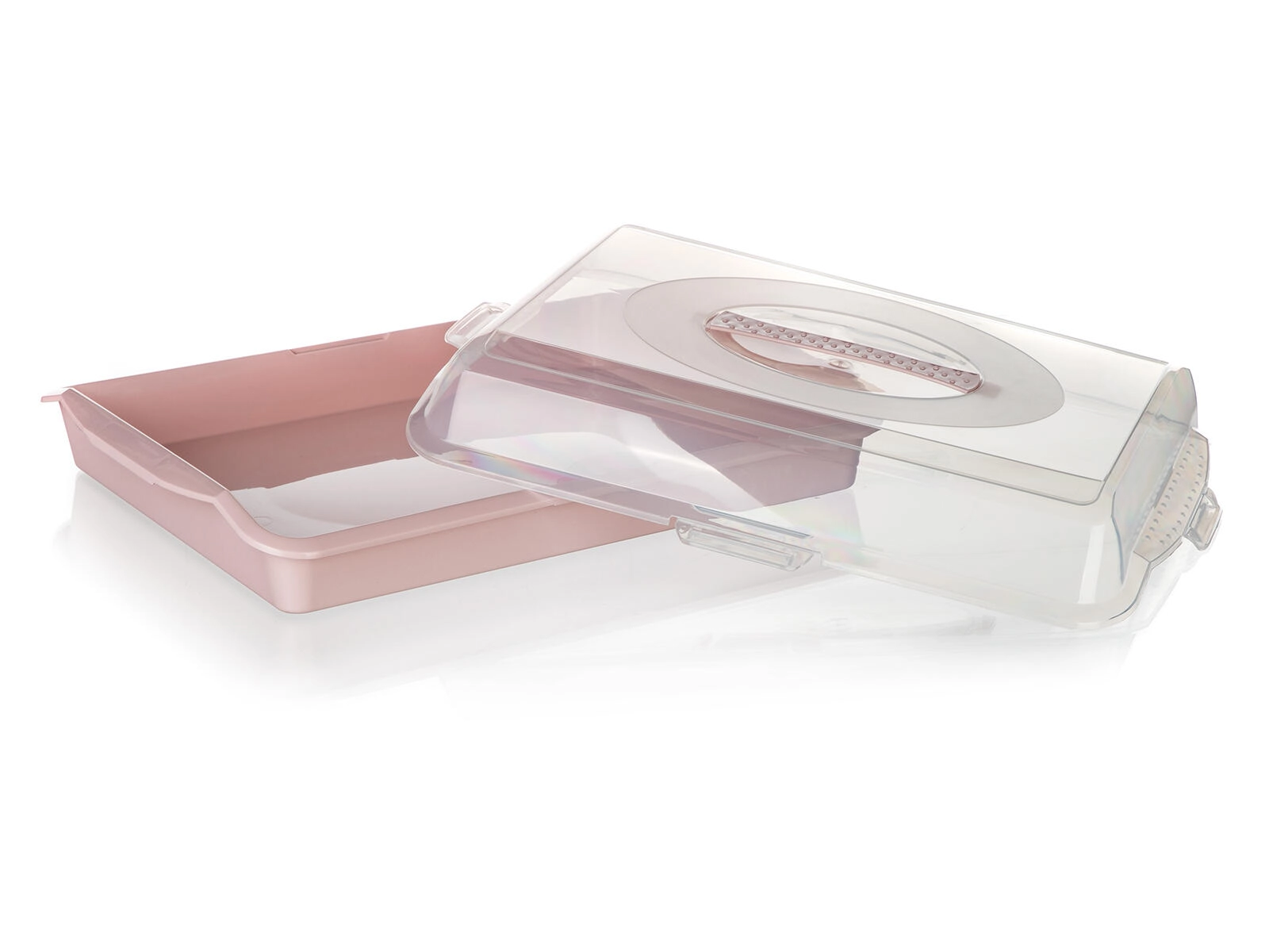 Praktičen plastičen pladenj s pokrovom Culinaria z merami 45 × 35 × 10,5 cm je idealen za prenašanje in shranjevanje pit, tort in sladic. Prozoren pokrov z varnimi sponkami ščiti vsebino pred prahom in poškodbami, nizki profil pa omogoča udobno zlaganje. Na voljo v mešanici barv – rožnata in modra.