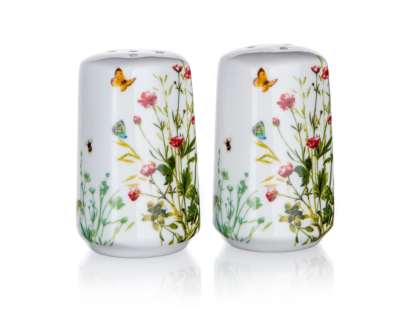 Vnesite na mizo nežnost narave. Keramična solnica Meadow v beli glazuri z dekorjem cvetlic, metuljev in listov je stilski in praktičen dodatek za vsakodnevno obedovanje. Zaradi ergonomične oblike dobro leži v roki, natančne odprtine za posipanje pa olajšajo doziranje soli.