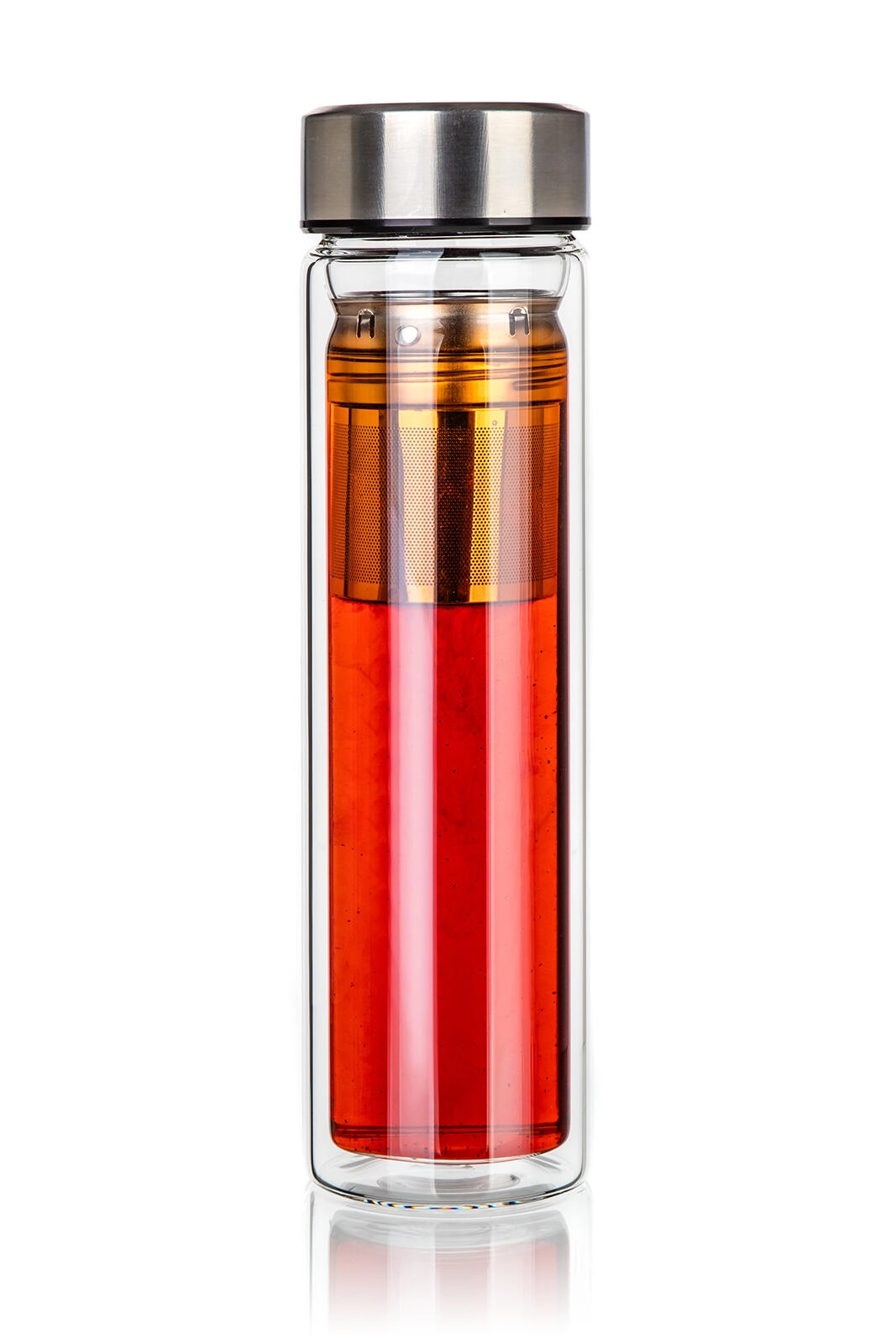 Vgrajeno nerjavno cedilo omogoča enostavno namakanje sipanega čaja, zelišč ali pripravo sadnih infuzij neposredno v steklenici.