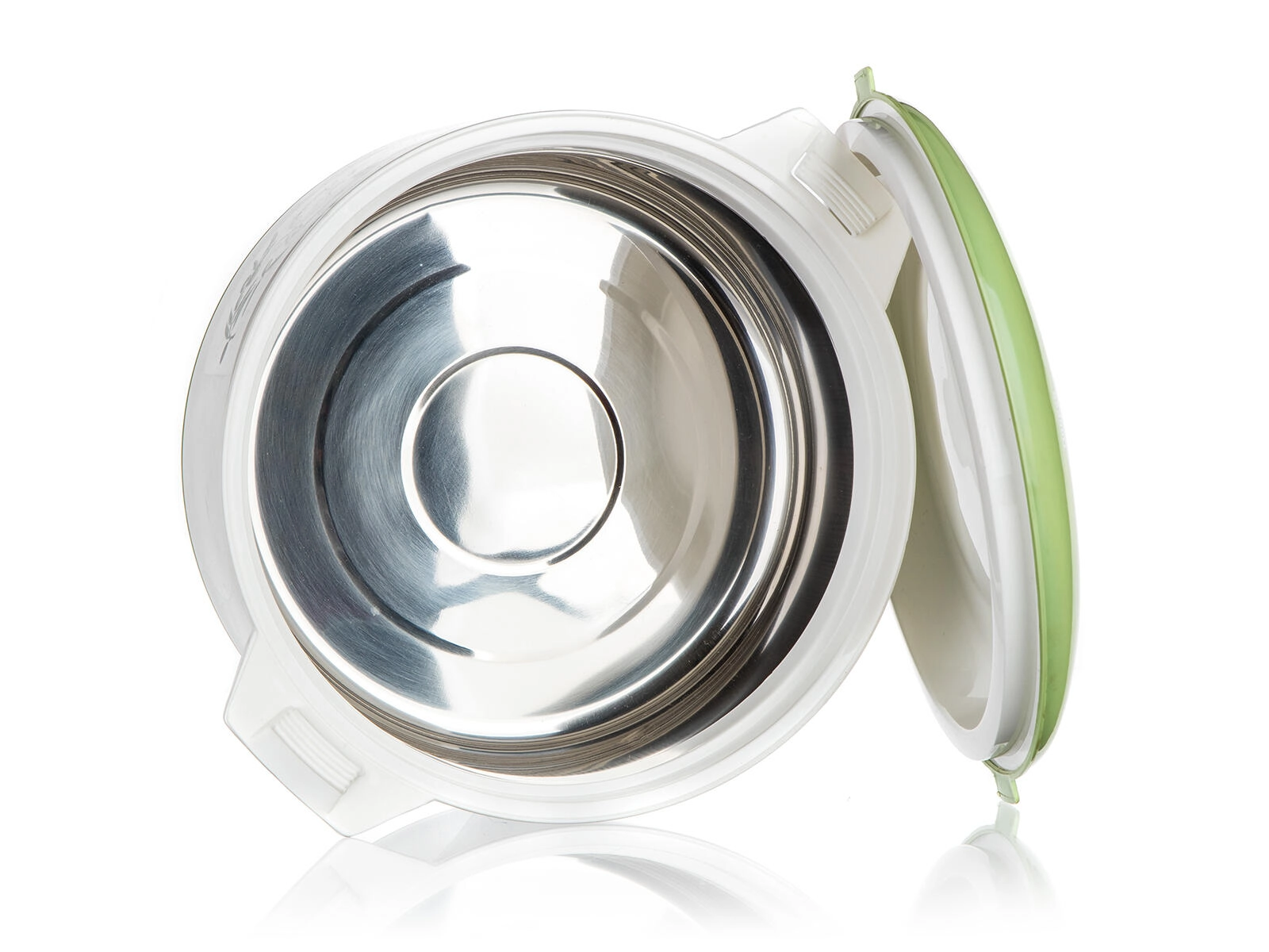 Dvojne stene z izpolnitvijo iz PUR pene in nerjaveča vložka ohranjajo hrano dlje toplo ali hladno – idealno za serviranje in prenašanje.