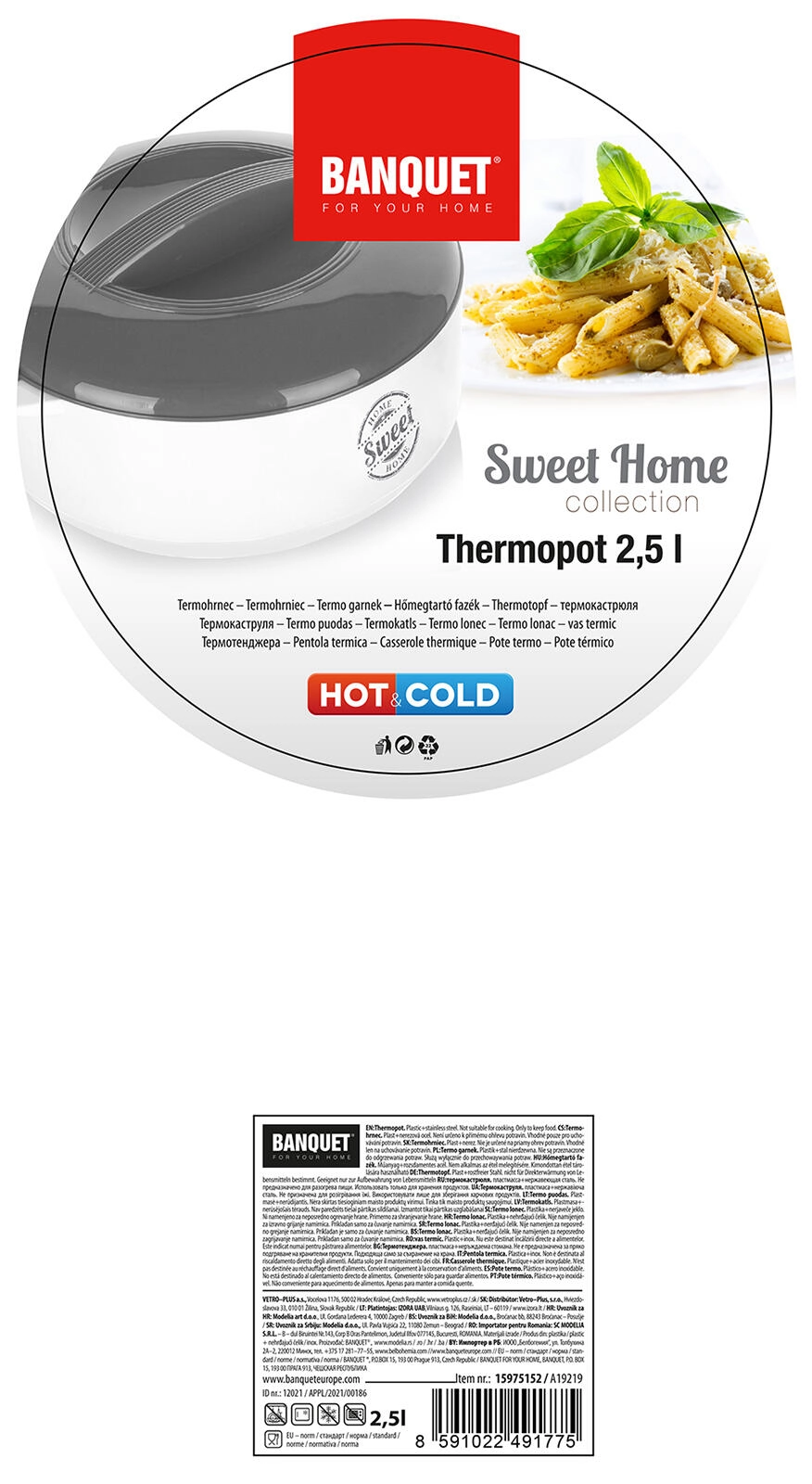 Termoposoda Sweet Home s prostornino 2,5 l je zanesljiv pomočnik za vsakodnevno kuhanje in družinska praznovanja. Kombinacija notranje posode iz nerjavnega jekla in kakovostne izolacije iz PUR pene pomaga, da jedi dolgo ostanejo tople ali hladne brez potrebe po ponovnem segrevanju ali hlajenju.