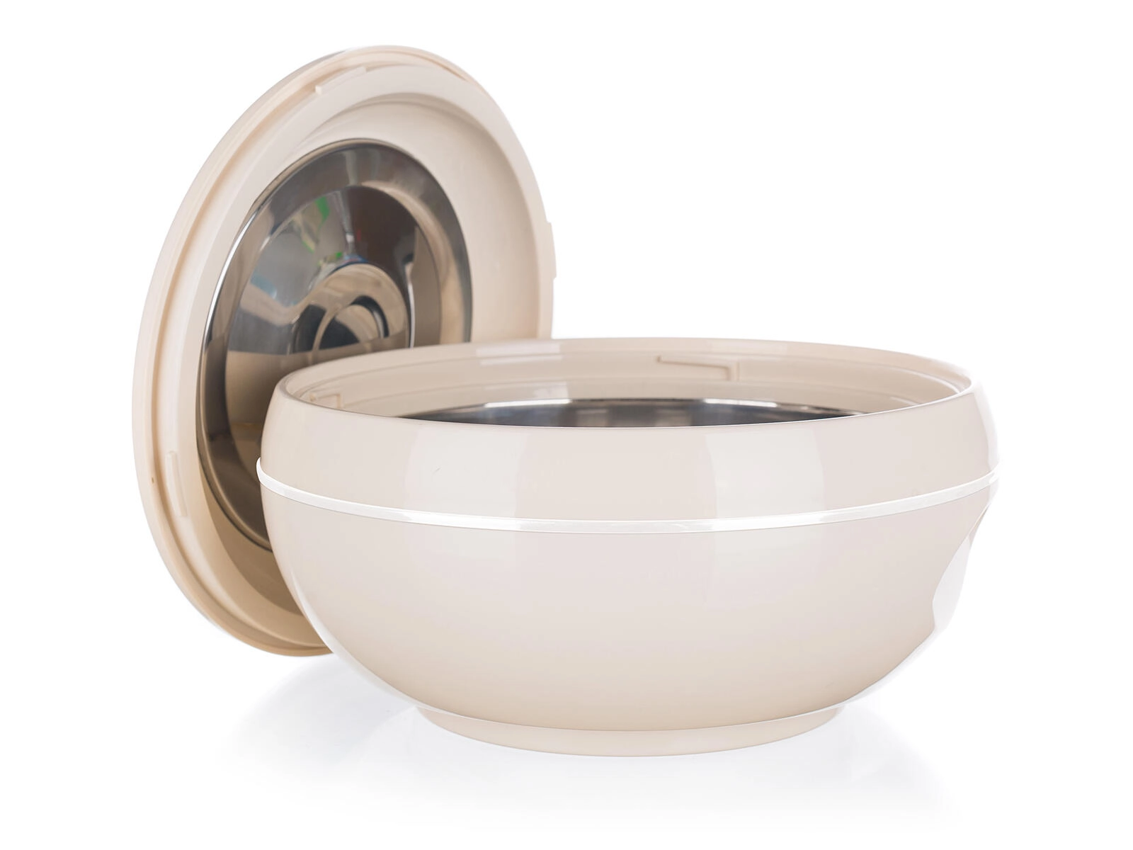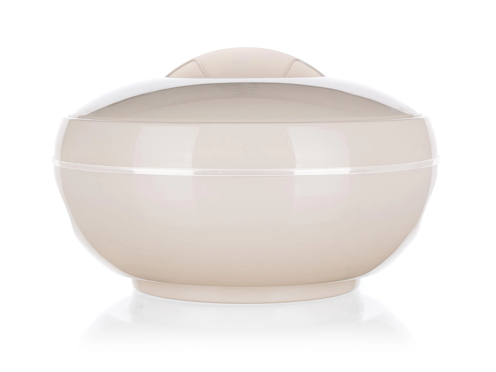 Lahek in trpežen plastičen ovoj v bež barvi je enostaven za vzdrževanje, pokrov z ročajem pa omogoča udobno odpiranje in zapiranje. Posoda je odlična za juhe, priloge in omake pri družinskih kosilih, peki na žaru ali pikniku.
