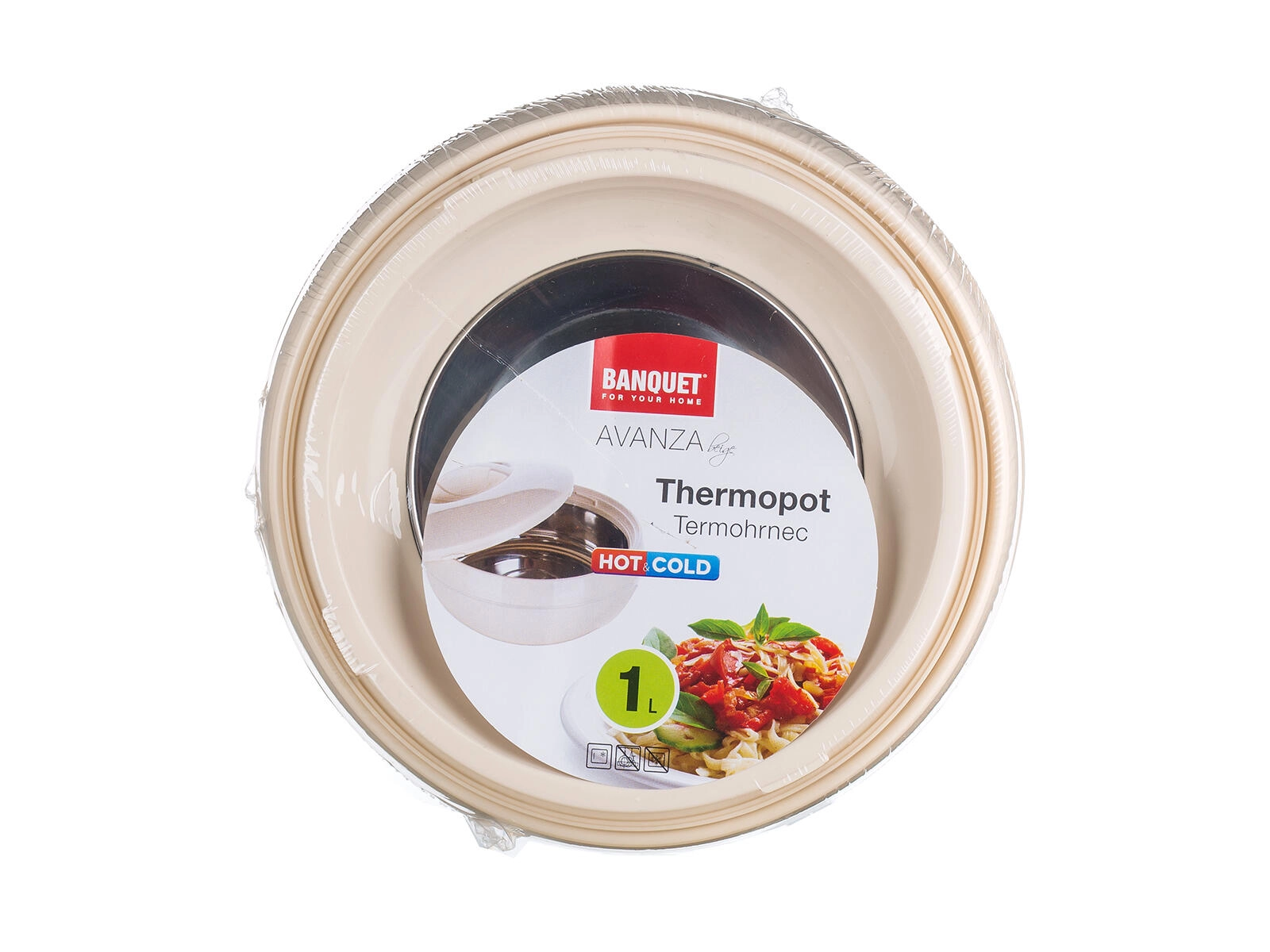 Praktična termoposoda s pokrovom AVANZA s prostornino 1 l ohrani vaše jedi dlje tople ali hladne. Združuje nerjavno jekleno vložbo z izolacijsko PUR peno in trpežen plastičen ovoj v elegantni bež barvi – idealna za serviranje in prenašanje jedi.