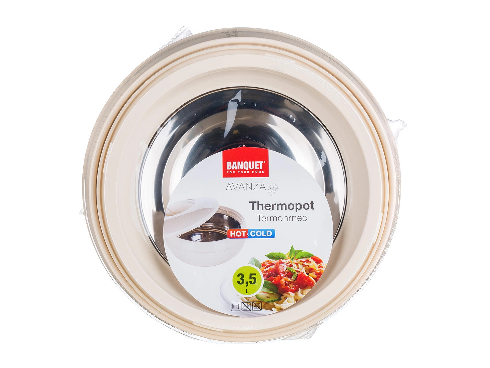 Termoposoda AVANZA 3,5 l je zanesljiv pomočnik za shranjevanje in serviranje pripravljenih jedi. Robustno plastično ohišje z PUR izolacijo in notranjo nerjavno vložko zagotavlja dolgotrajno ohranjanje temperature in enostavno čiščenje. Praktičen pokrov ščiti vsebino in omogoča varno prenašanje.