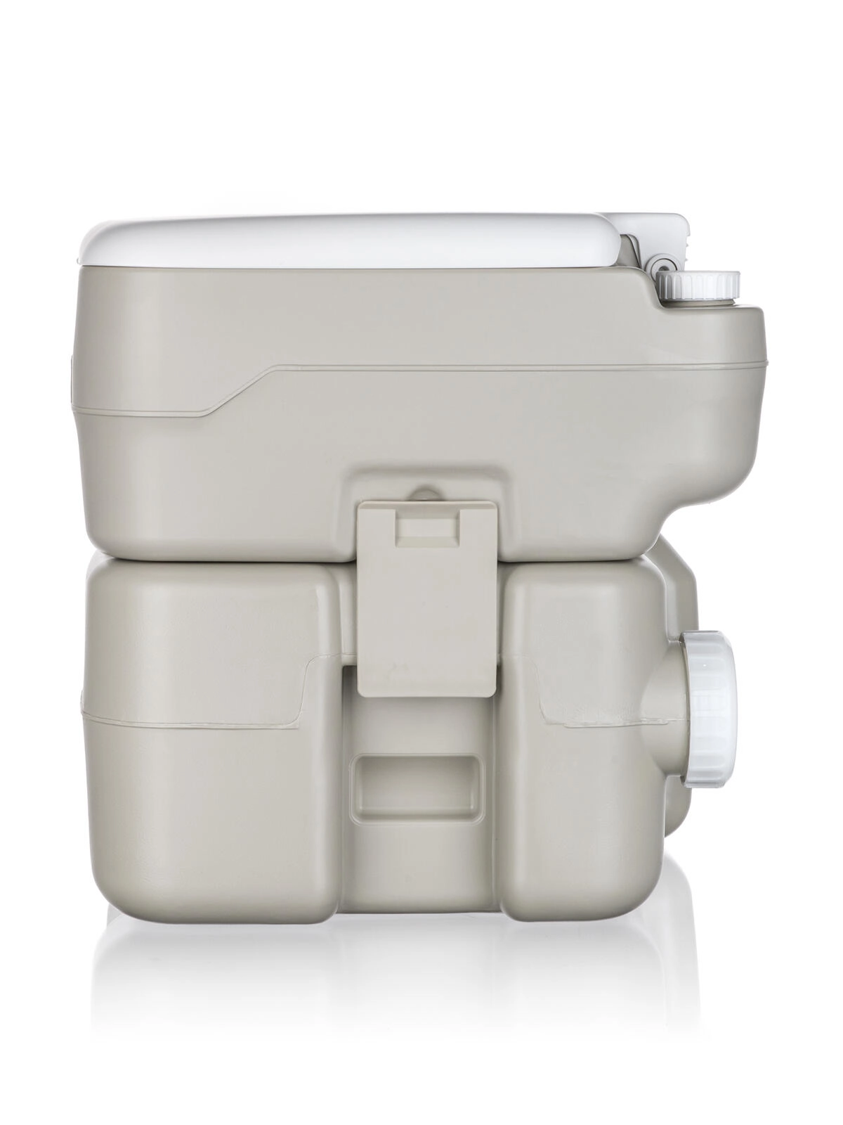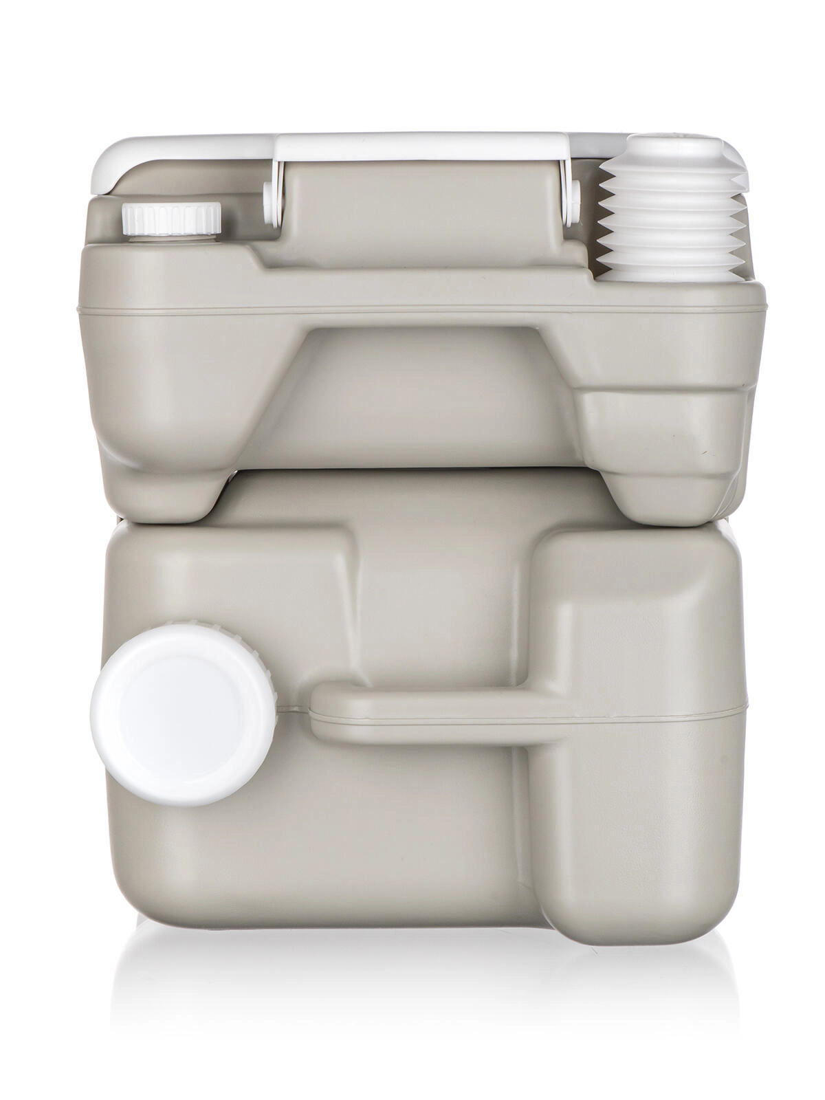 Praktično prenosno kemično stranišče za vikendico, kamp, avtodom in čoln ponuja naravno višino sedenja, velik 20 l odtočni rezervoar in 14 l rezervoar za čisto vodo. Zahvaljujoč dvosmerni splakovalni šobi in mehovskemu splakovanju zagotavlja zanesljivo izpiranje. Trpežen material HDPE je kemično odporen, brez vonja in nestrupen, nova zaobljena zasnova ter ojačano dno povečujeta udobje in vzdržljivost pri zunanji uporabi.
