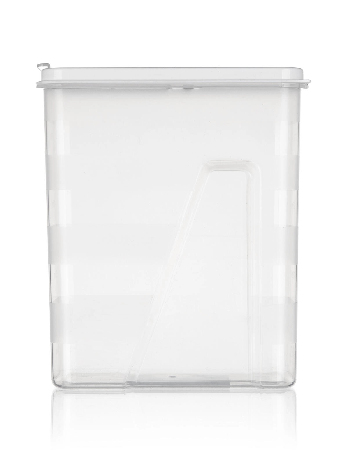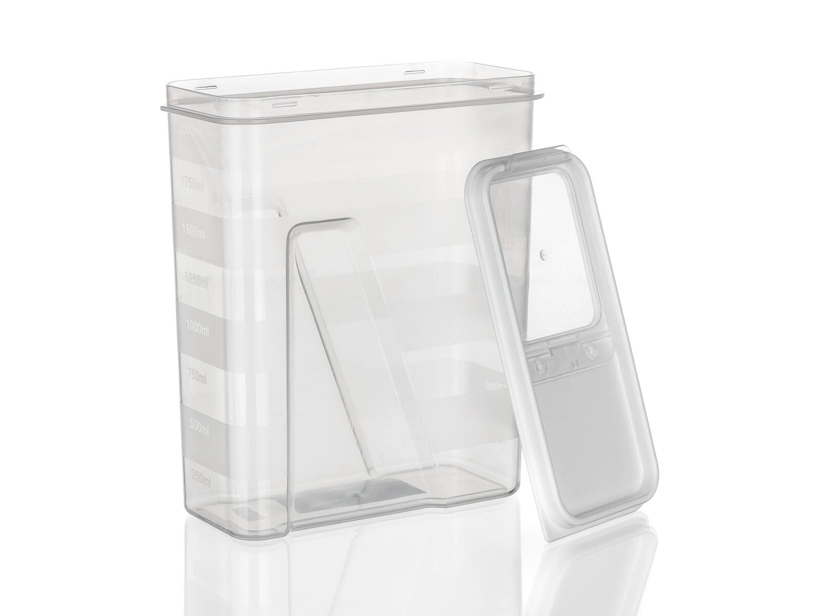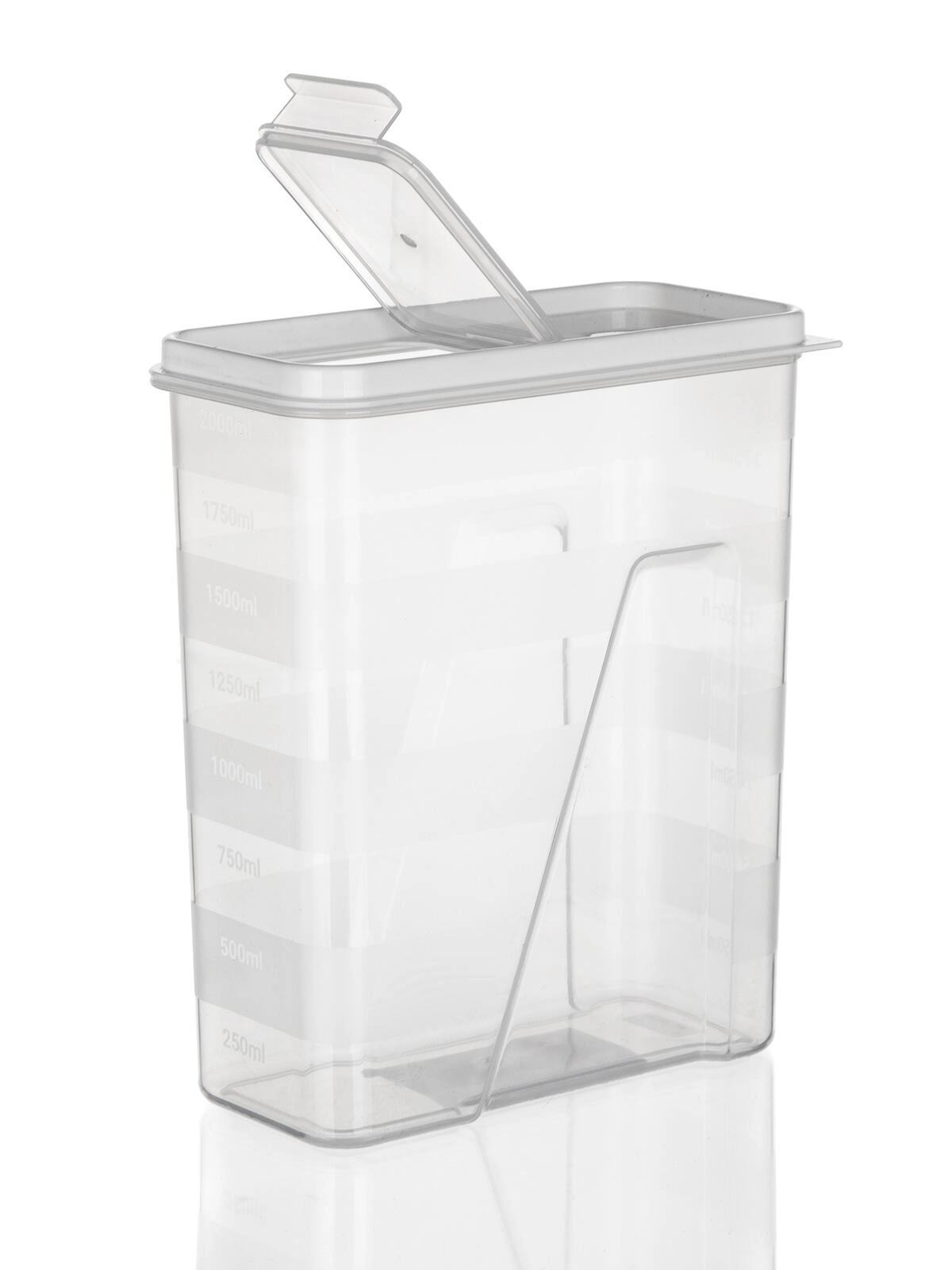Ta prostorna 2-litrska posoda je idealna za vsakodnevno organizacijo shrambe. Prozorne stene omogočajo hitro vizualno kontrolo vsebine, medtem ko bel pokrov s praktičnim odpiranjem poskrbi, da živila ostanejo dlje časa sveža in zaščitena pred vlago.